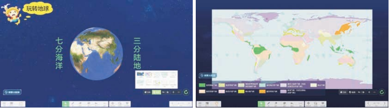 作为一名地理教师,我对希沃学科工具中的“星球”这一功能非常推崇。“星球”中包含太阳系的八大行星和冥王星,在初中阶段,其中常用到的要数我们的地球了。