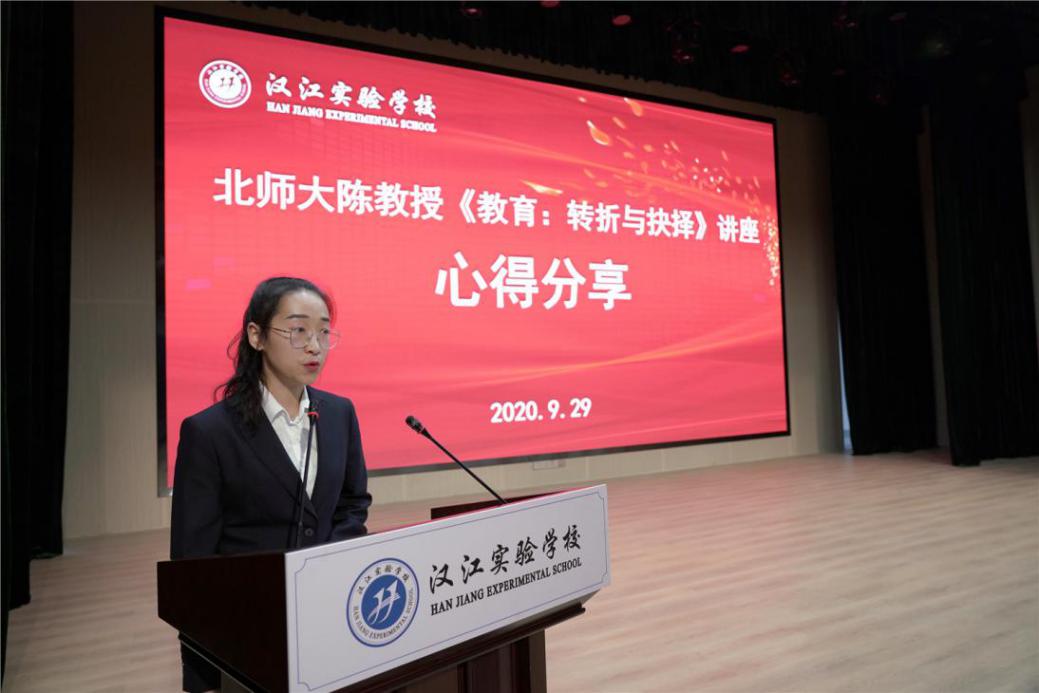我校组织各教职工代表分享北京师范大学陈锁明教授《教育:转折与抉择》专题报告的心得与体会。