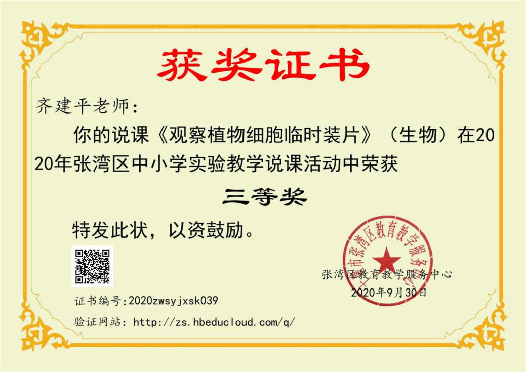我校教师在张湾区第四届中小学实验教学说课比赛中获得一等奖、三等奖。