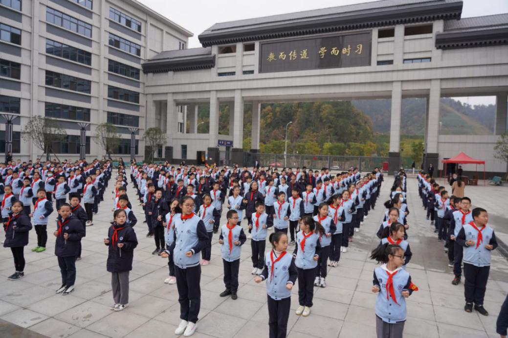 小学举行纪念一二·九活动,全体学生手持学生平板,齐诵《少年中国说》。