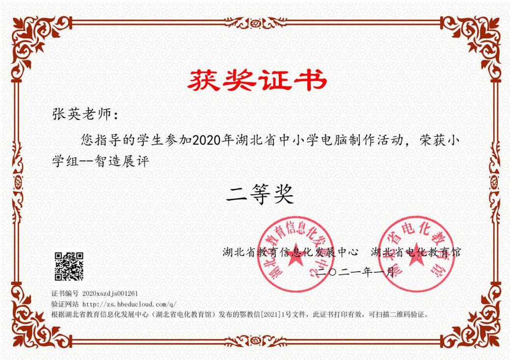 我校教师指导学生在2020年湖北省中小学电脑制作活动竞赛中荣获省级二等奖。