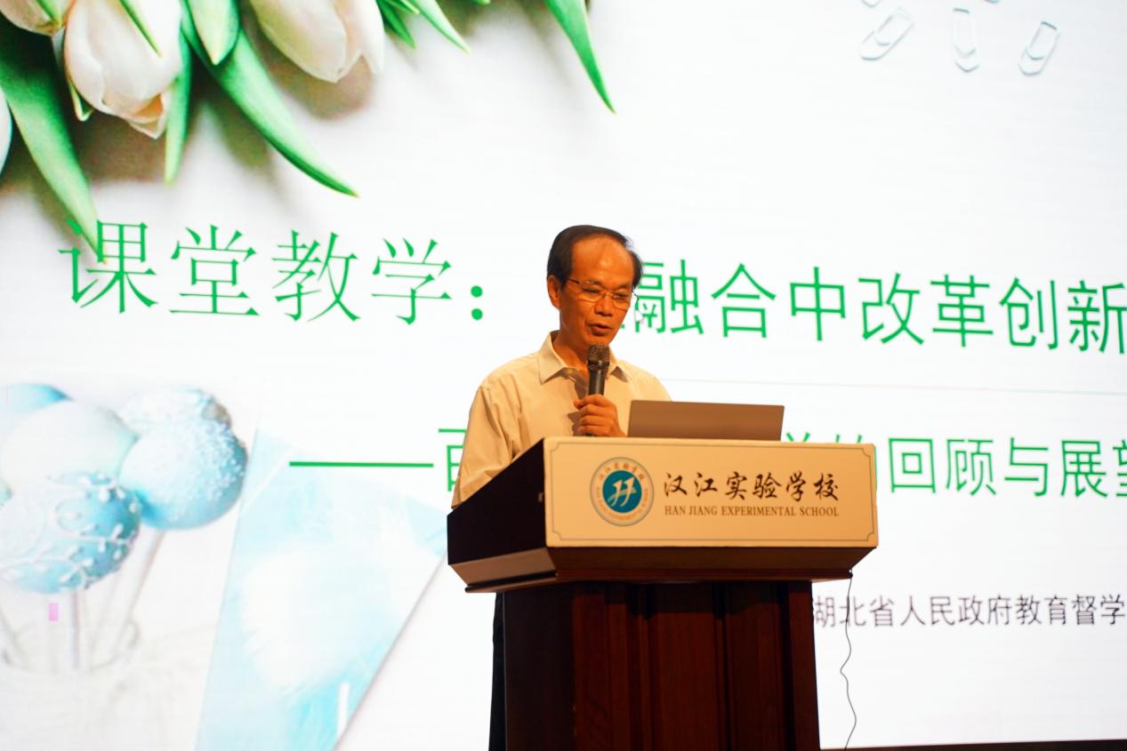 我校特邀国家教育督导委员会基础教育评估专家、湖北省人民政府第七届教育督学朱仕雄做《在融合中改革创新》主题讲座。朱督学对百年课堂教学进行了回顾和展望,从当代教育从哪来、对传统教法的改进、教育回归主体性育人、教育走向深度融合等方面深刻解读了教育时代“1.0、2.0、3.0”理念。朱督学的主题讲座聚焦教育永恒的追求—质量和效率,提倡教育要素在融合中改革创新,并以他多年的教育教学研究与实践经历为我校教职工如何在教学工作中精益求精开拓了思路。