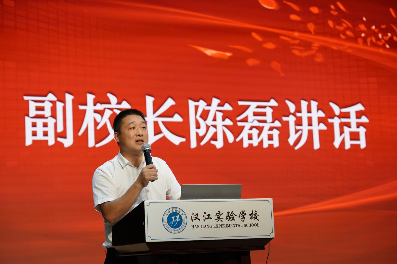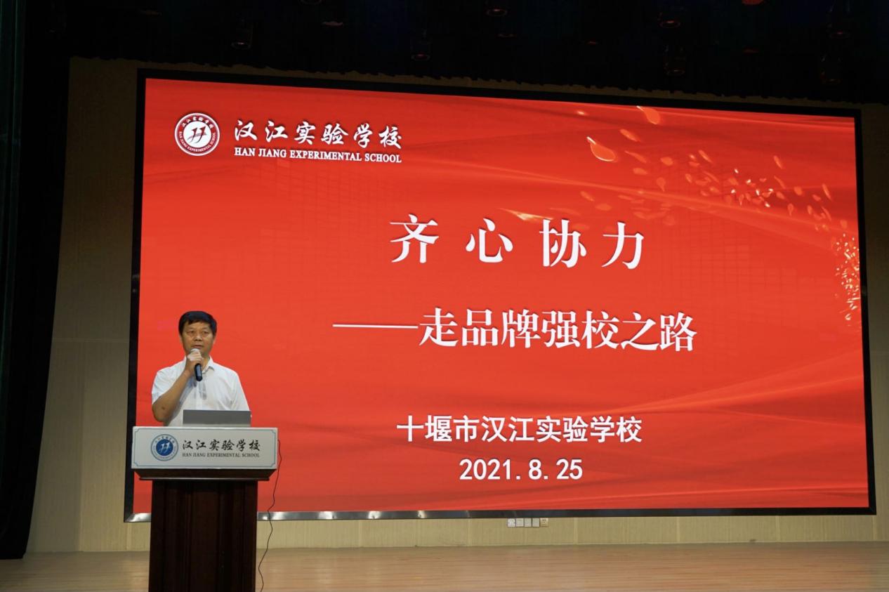 强师德建设,铸育人品牌。汉江实验学校校长朱仕竹以《齐心合力,走品牌强校之路》为主题,详细介绍了我校校园文化、品牌内涵、核心竞争力、品牌建设等内容,为全体教职工指明了学校未来发展的方向;以《学党史、跟党走、铸初心》为主题,带领全体教职工学习、研究党在不同历史时期的教育方针,激励大家以德施教、以德立身,争当新时代教育的实践者、探索家。
