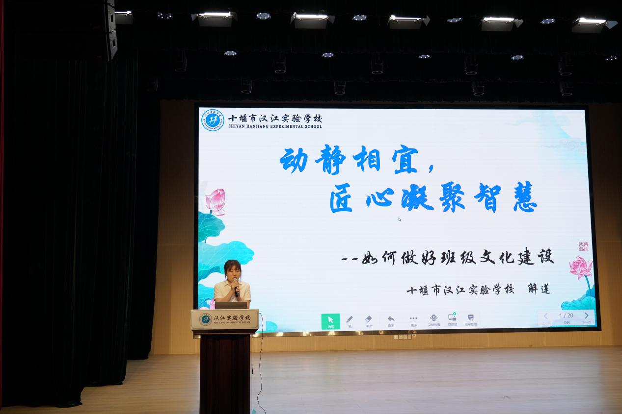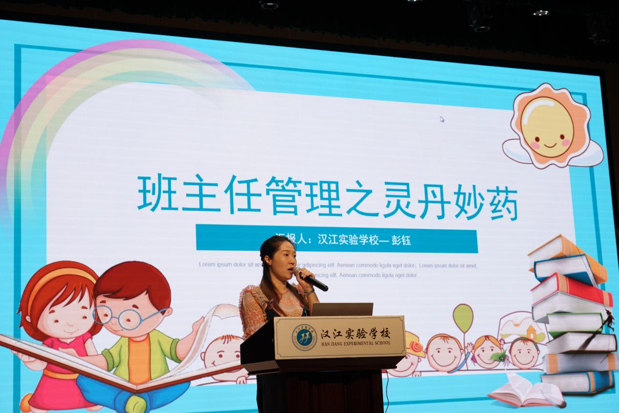 班主任是班级管理工作的主要执行者。汉江实验学校副校长陈磊为教师们作了《班主任工作规范与班级管理策略》的主题培训。陈校长以自己十几年班主任工作经历为例,向教师们传授班级管理的策略和成为优秀班主任的十条法宝,希望教师们学习诗歌《致敬班主任》的责任精神,明确定位和职责,做好班级管理工作。小学部彭钰教师的“灵丹妙药”和初中部解莲教师“动静相宜”,为教师们学习班级管理经验提供了丰富的角度和有效的方法。