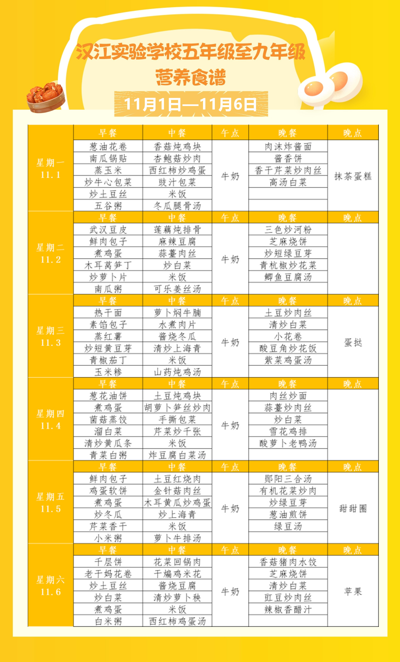 下一篇:?汉江实验学校2021年10月25日-2021年10月30日学生食谱公示