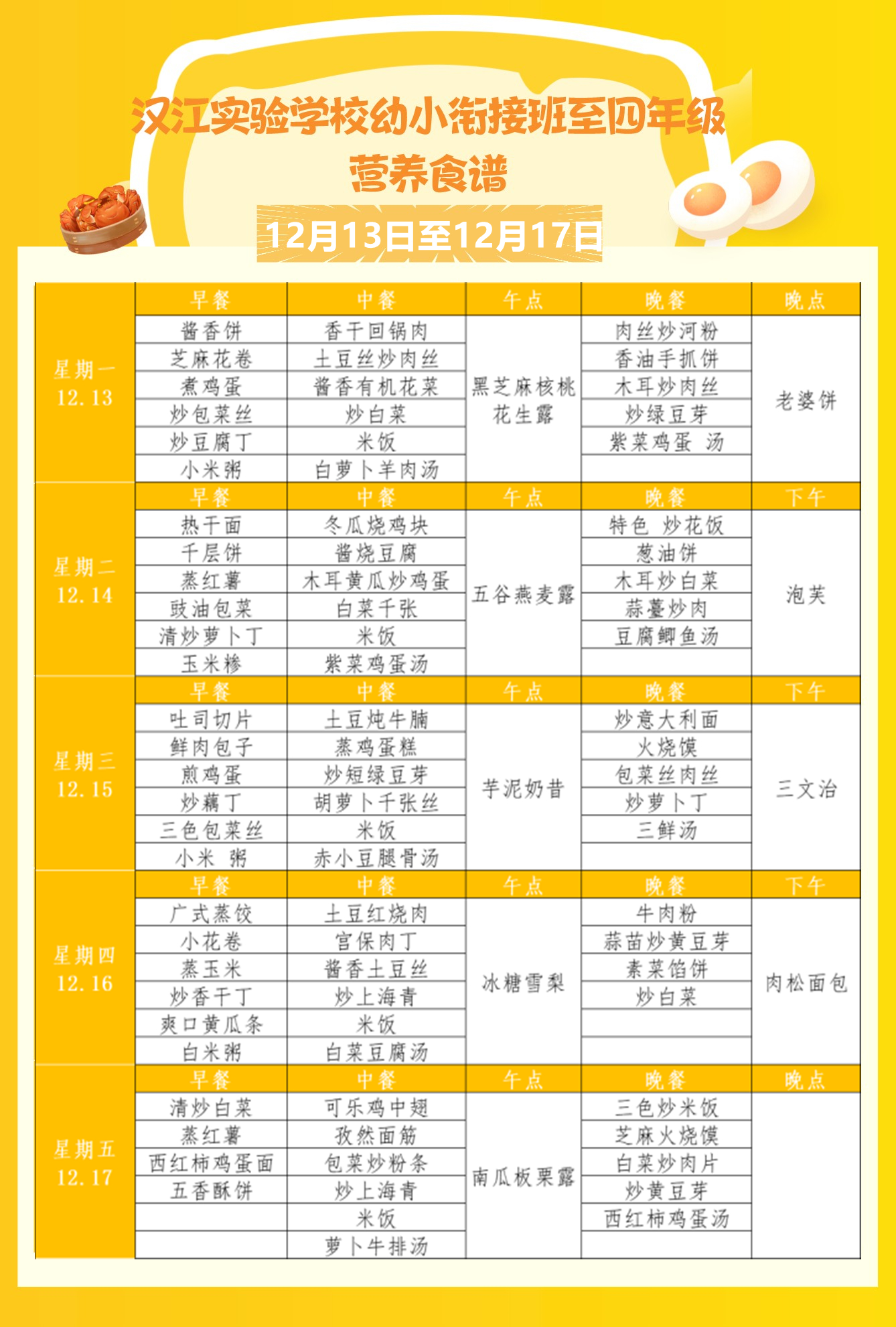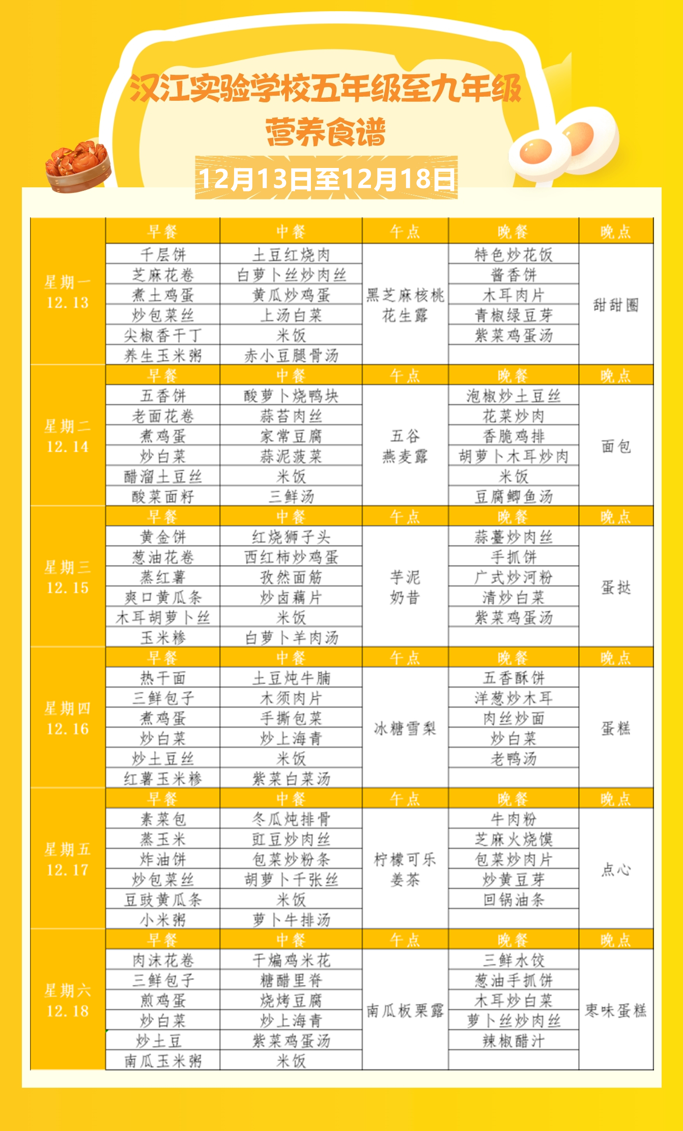 下一篇:?汉江实验学校2021年12月6日-2021年12月11日学生食谱公示