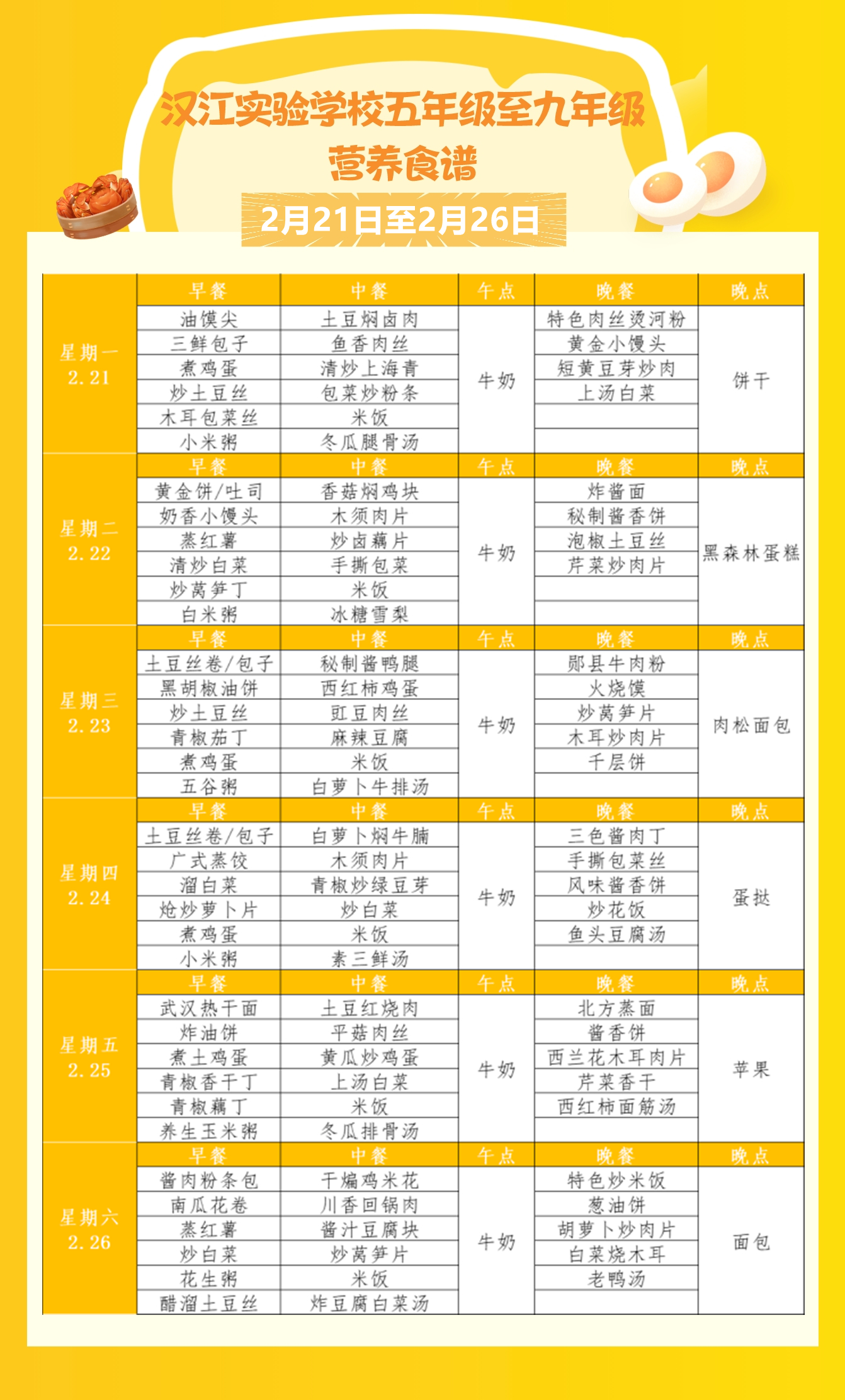 上一篇:?汉江实验学校2022年2月28日-2022年3月5日学生食谱公示