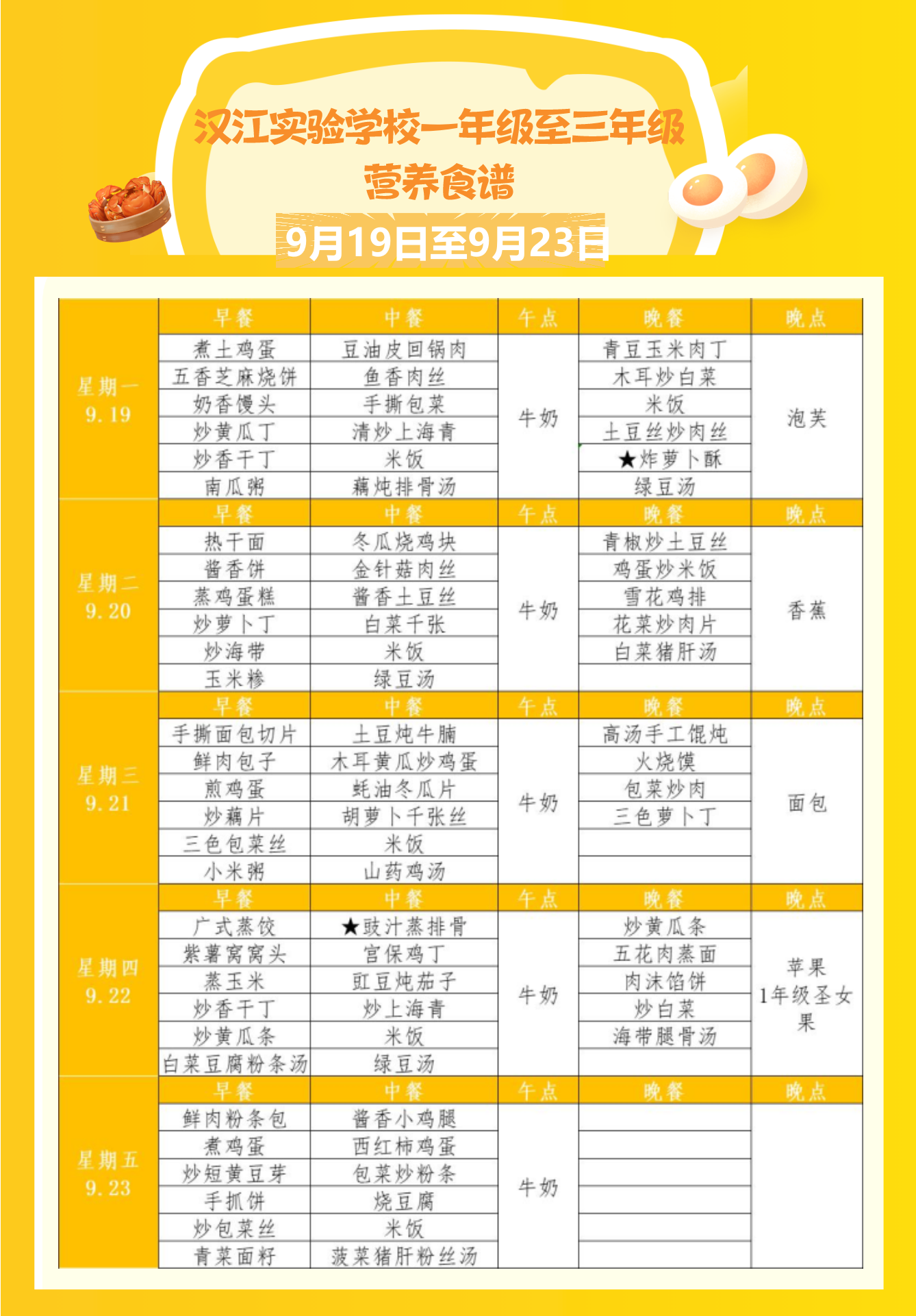 下一篇:?汉江实验学校2022年9月12日-2022年9月17日学生食谱公示