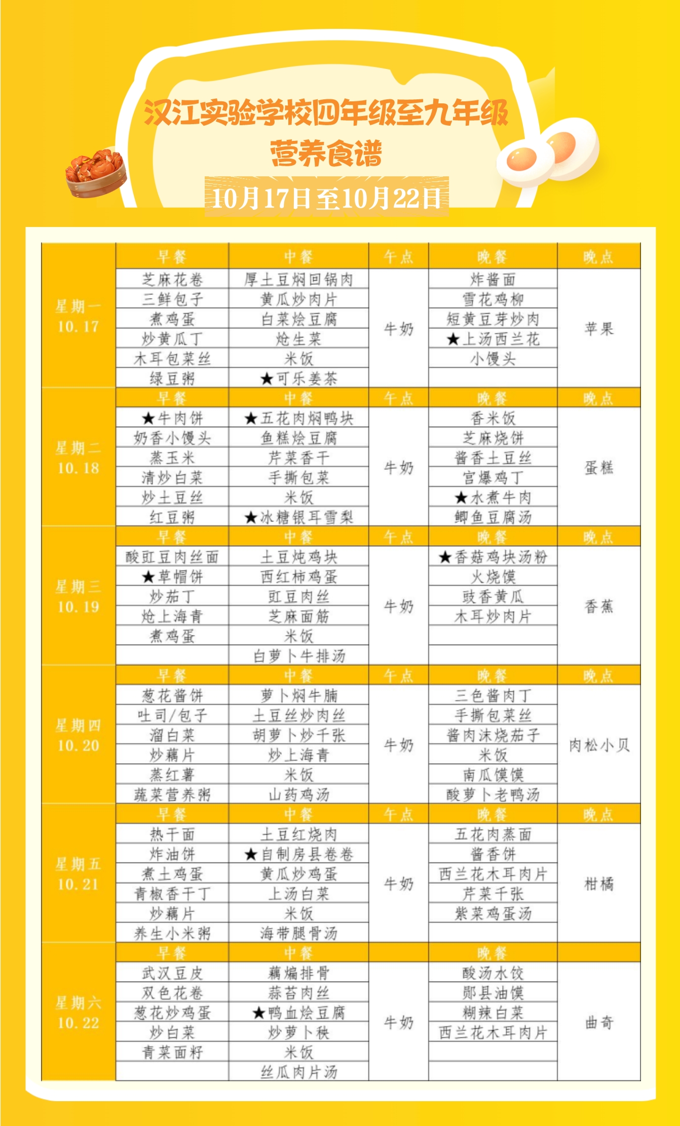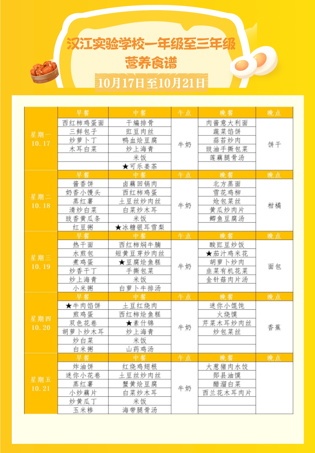 上一篇:?汉江实验学校2022年10月24日-2022年10月29日学生食谱公示