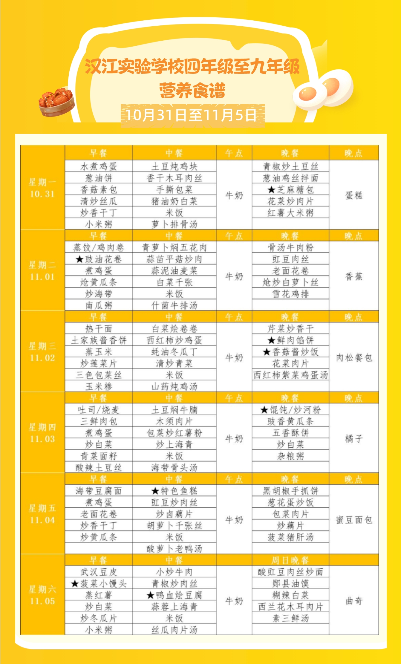 上一篇:?汉江实验学校2022年11月7日-2022年11月12日学生食谱公示