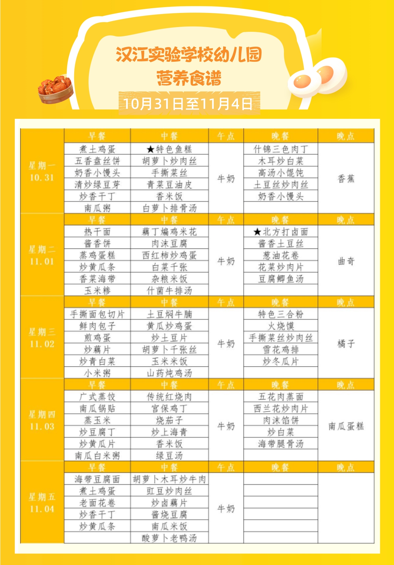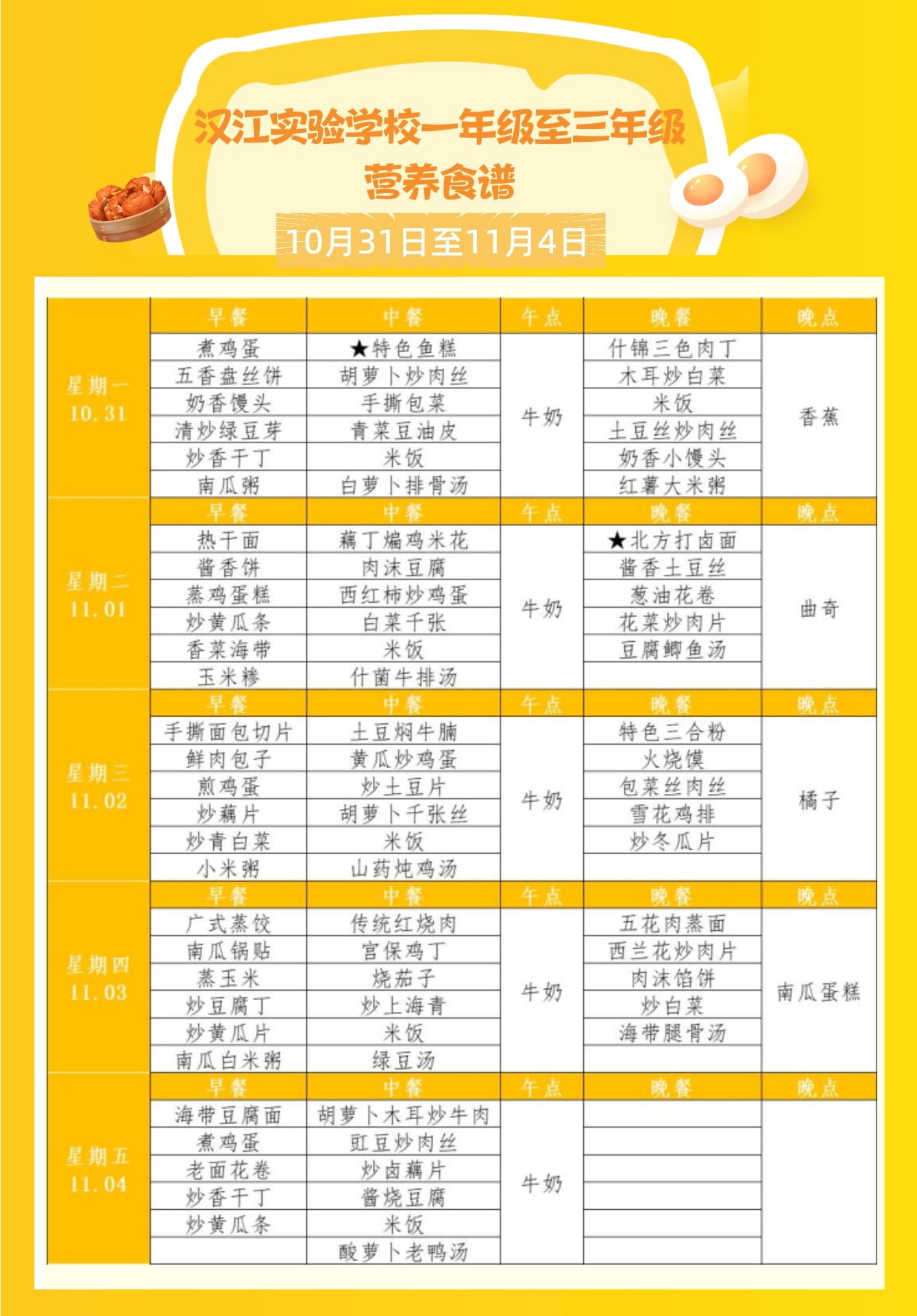 下一篇:?汉江实验学校2022年10月24日-2022年10月29日学生食谱公示