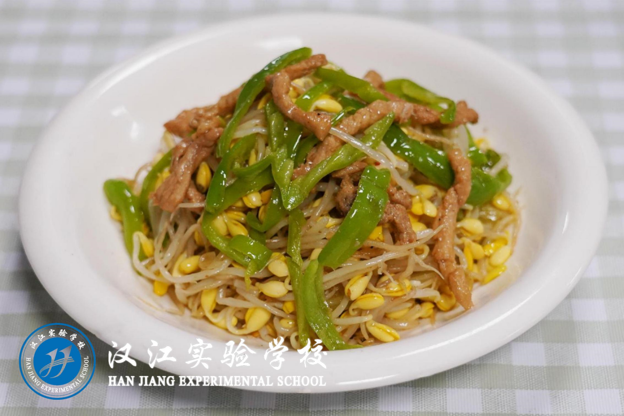 中餐:湖南红烧肉、水煮肉片、青椒炒榨菜丝、酸辣炒绿豆芽、米饭、白萝卜牛排汤