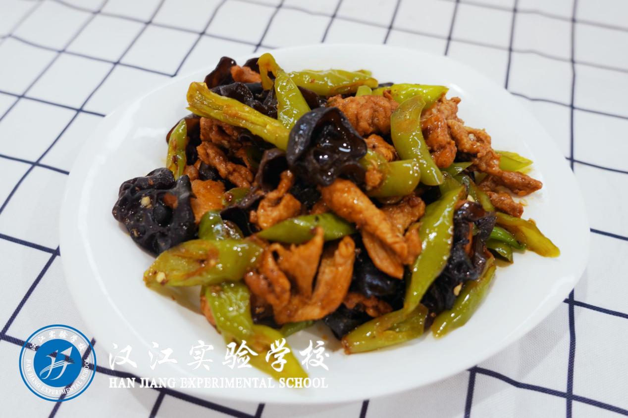 晚餐:米饭、宫爆肉丁、土豆丝炒肉丝、炒卤千张丝、雪花鸡柳、鱼丸豆腐汤