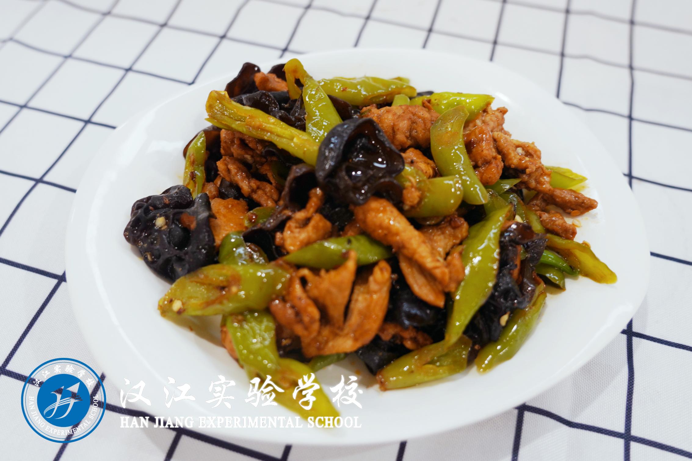 中餐:牛皮干炒回锅肉、汉江下饭菜、土豆炖茄子、酱香有机花菜、米饭、丝瓜鸡蛋汤