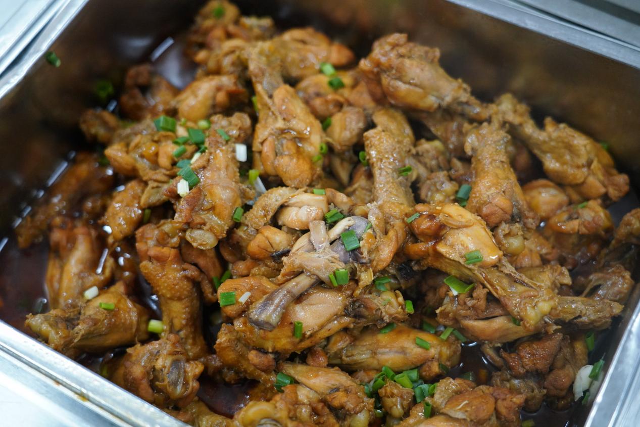 中餐:红烧鸡翅根、汉江下饭菜、木耳黄瓜、炝炒毛白菜、玉米排骨汤、米饭