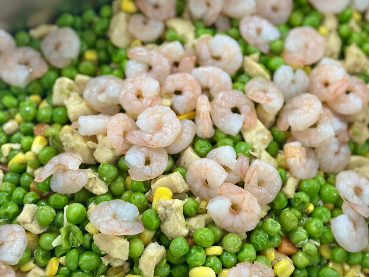 中餐:椒盐大虾、宫爆鸡丁、鱼香肉丝、清炒莴笋片、米饭、排骨汤