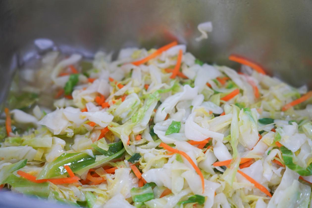 早餐:肉丝卷、豆沙包、酸辣大白菜、蒸粗粮、煮鸡蛋、薏米白粥