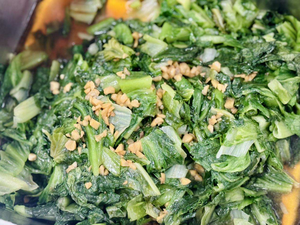 中餐:香卤鸡翅根、白菜杆炒肉丝、蒜蓉菠菜、芹菜香干、米饭、冬瓜腿骨汤