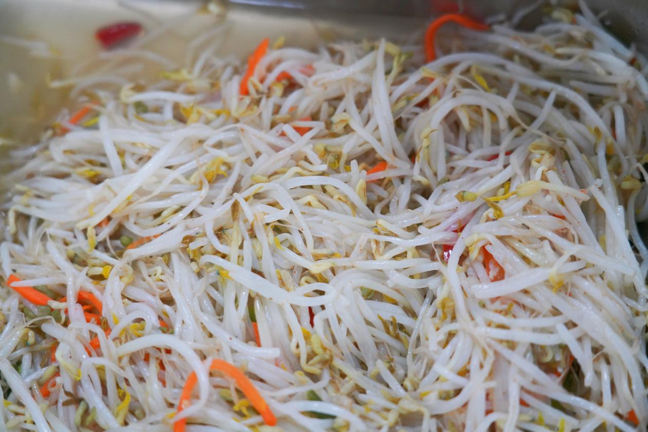 晚餐:牛肉粉、芝麻火烧馍、小青瓜肉片、三色绿豆芽