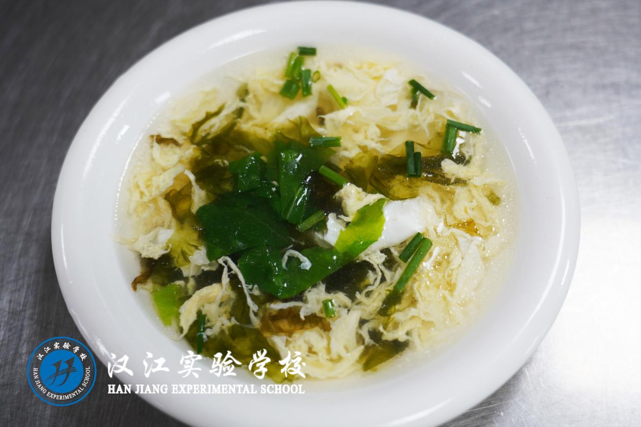 ②初中部海带豆腐面、吐司片、卤鸡蛋、炒莴笋丝、养生小米粥