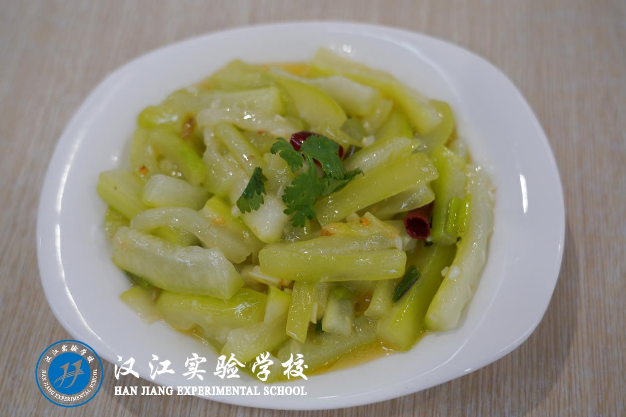 中餐:汉江椒麻鸡、牛皮干肉丝、酸辣包菜、地黄瓜炒培根、冬瓜虾米汤、米饭
