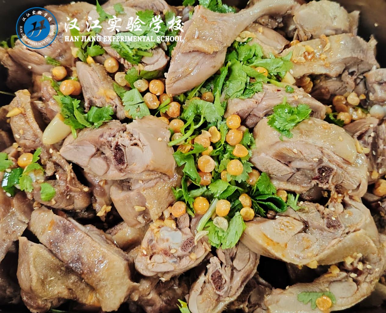 中餐:香酥鸭腿、胡萝卜千张肉片、蒸鸡蛋糕、豆油皮奶白菜、萝卜腿骨汤、米饭