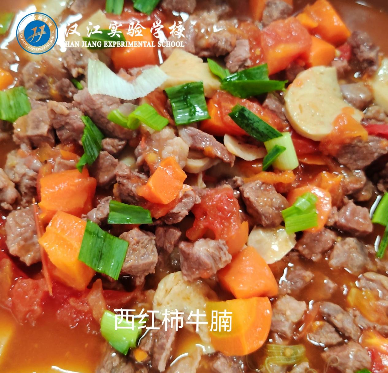 中餐:西红柿炖牛腩、外婆菜炒鸡蛋、双花肉片、香菇小青菜、美味老鸭汤、米饭