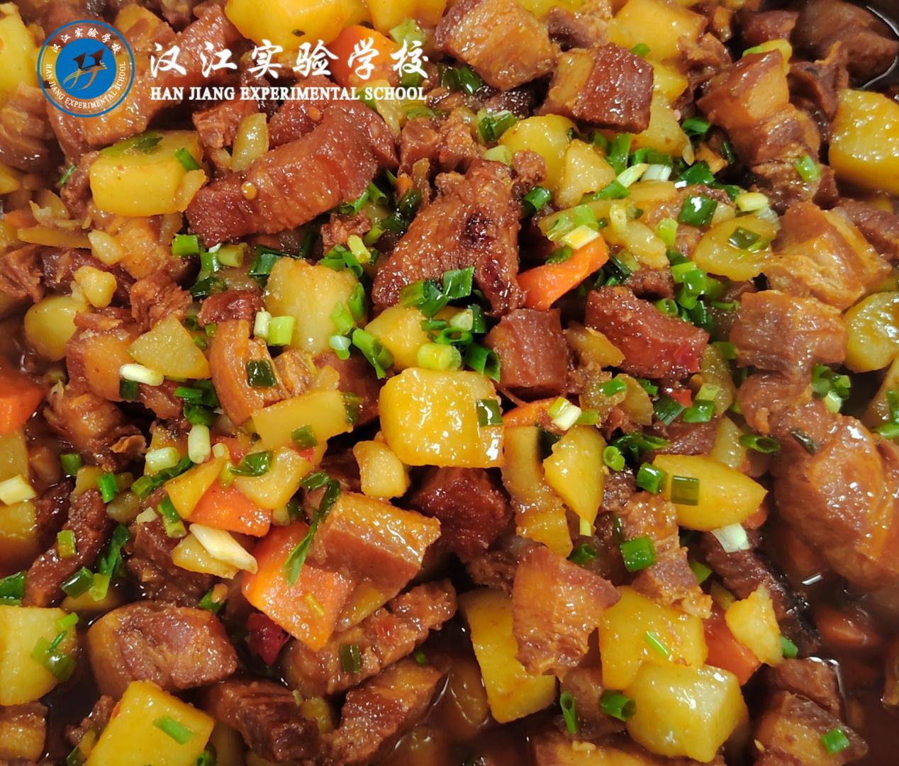 ②初中部菠萝炒饭、芝麻酥饼、土豆肉丝、手撕牛心包、雪梨银耳汤