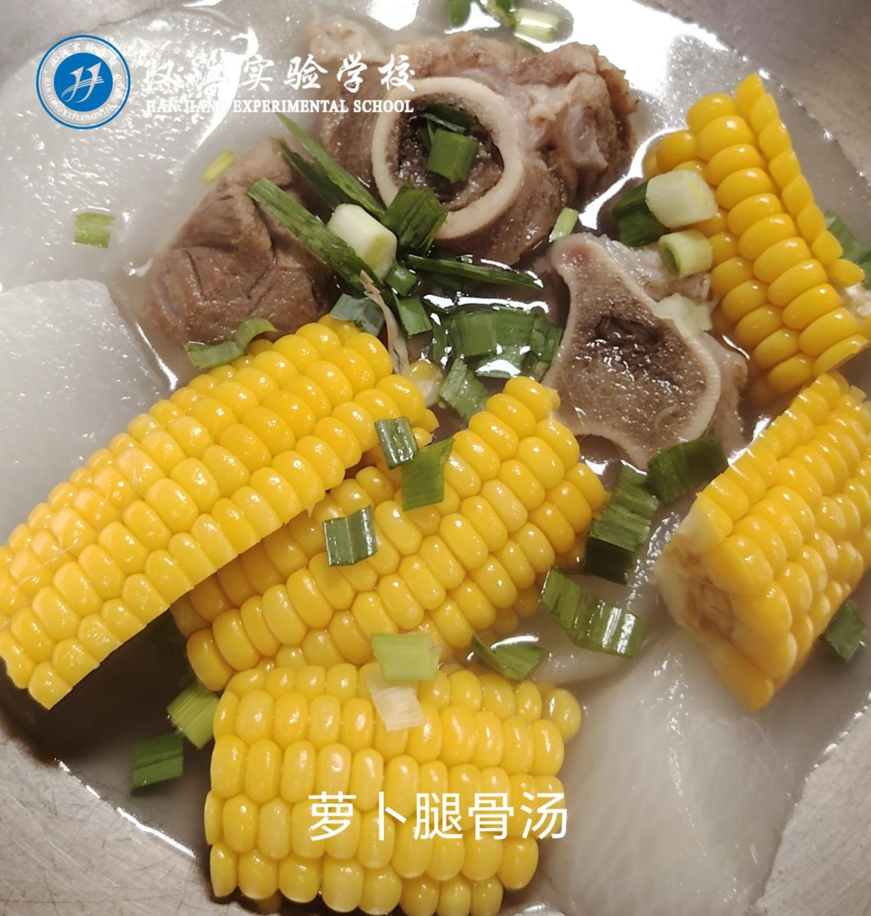 早餐:①小学部芝麻糖包、酱香饼、清炒萝卜丝、蒸粗粮、黑米粥