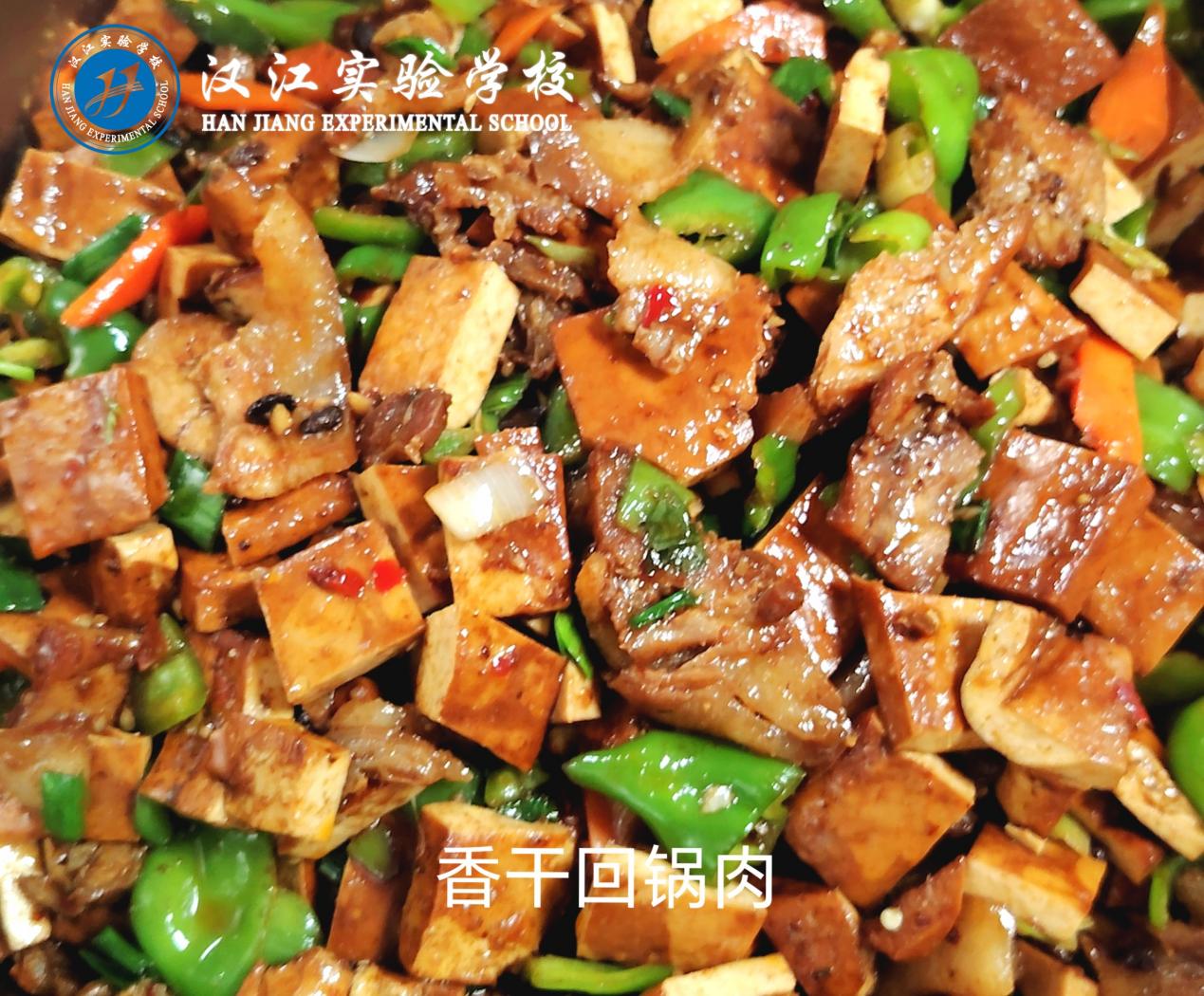 中餐:杂粮炖鸡块、香干回锅肉、肉沫冬瓜、粉丝娃娃菜、鱼糕汤、米饭