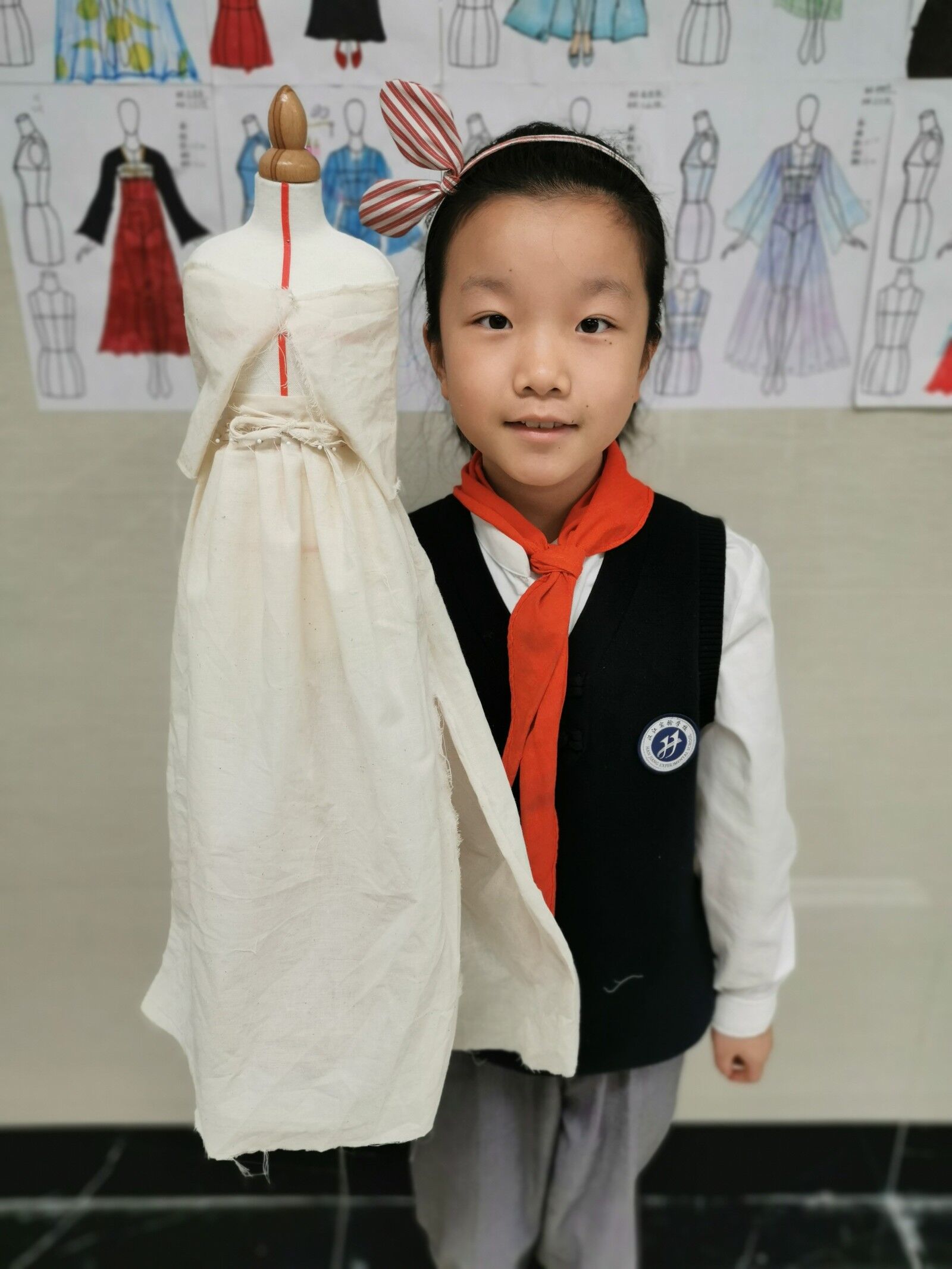 以培养孩子们的创新精神与动手能力,丰富学校的校园文化。服装设计社团主要学习中国传统服饰——汉服,与以汉服为设计基础的汉元素服装。本学期服装设计社团学习主题为“隋唐风采”,对南北朝、隋、唐、五代十国时期服饰风格特点进行了解学习,结合自身需求与实际情况进行汉服与汉元素设计,并将设计的服装制作出来;在服装制作过程中,将产生的剩余废弃布料收集起来,在服装制作完成后将其制作成不同样式的饰品,以培养学生勤俭节约、变废为宝的好习惯。