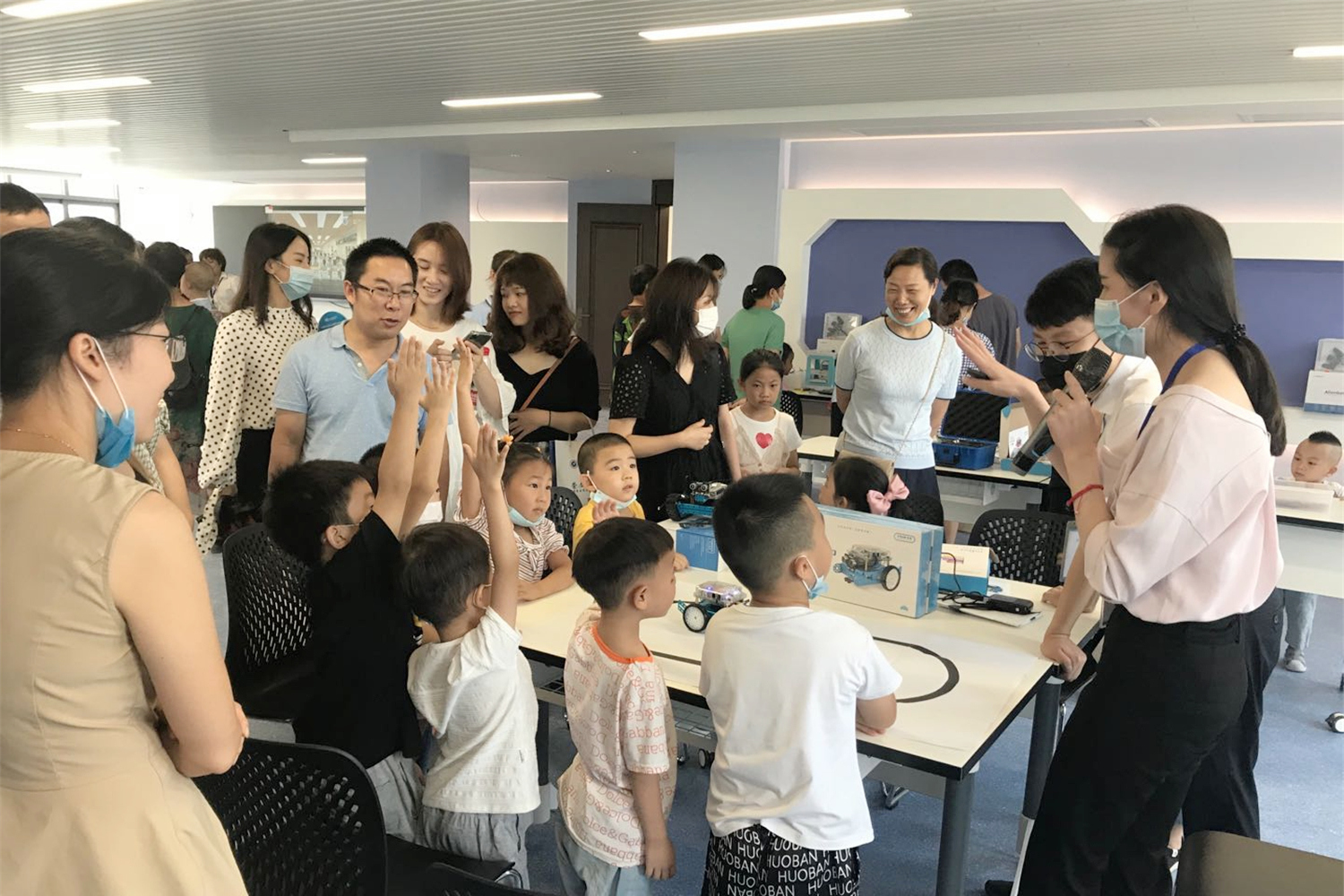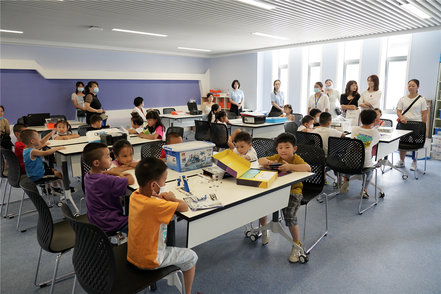 随后,老师带领小朋友们参观校园,体验VR虚拟体验室、创客室、电子沙画室等功能室,科技氛围浓厚的课堂体验让小朋友们流连忘返。