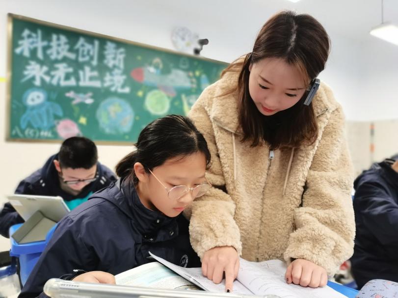 在学习上,她严格要求,课堂生动有趣,能让学生在轻松的氛围中掌握知识。传授知识不仅限于课堂,操场上、走廊上、办公室里、食堂中……都能看到她辅导学生的身影。耐心地讲解、严格地知识抽查,哪怕是牺牲休息时间,只要学生能有点滴进步,她都甘之如饴。