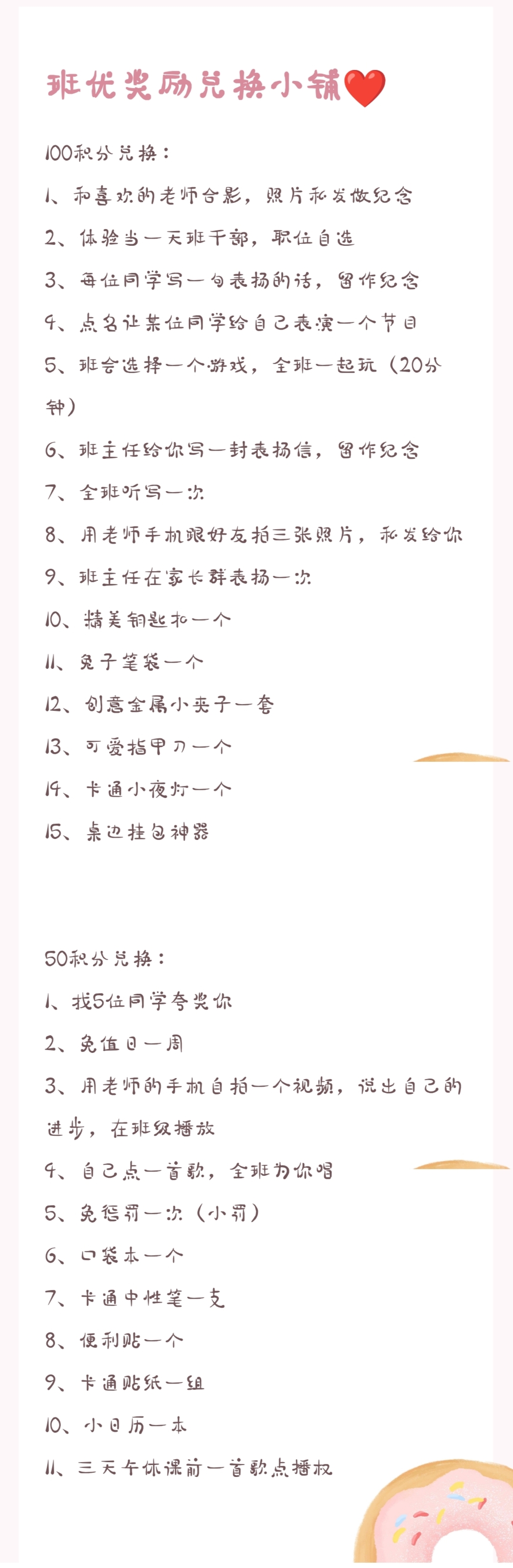 汪老师积极创新,利用班级优化大师制定了完善的积分表彰制度,给每位同学、每个小组进行每日一总结的积分累计,奖励小铺更是别出心裁,孩子们的积极性更高了。兑换到自己心仪的奖励时,脸上都洋溢着自豪幸福的笑容。
