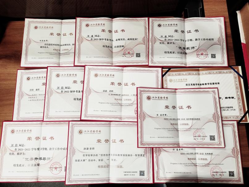 为了提升自己的师能,精进自己的教学水平,汪老师积极参加学校及张湾区举办的各项赛事活动,多次摘取校级、区级一等奖的荣耀,经过各种比赛的淬炼,和广泛地学习其他教师的优点来取长补短,汪老师不断提高自己,充实自己,她所带的班级学习成绩一直排前。