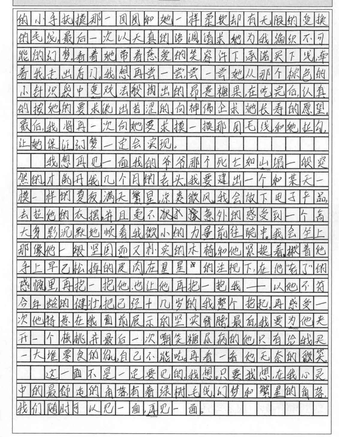 这是一篇学生所写的作文,字里行间无不表述了对亲人的思念之情。方老师通过学生家长发来的图片,精心制作了视频送给孩子,视频结尾也有他想要说的话。
