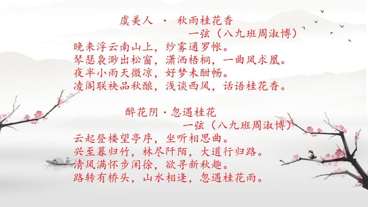 让“随文练笔”行走于语文课堂。在上完语文“桂花课”后,有两名学生主动写了小诗。