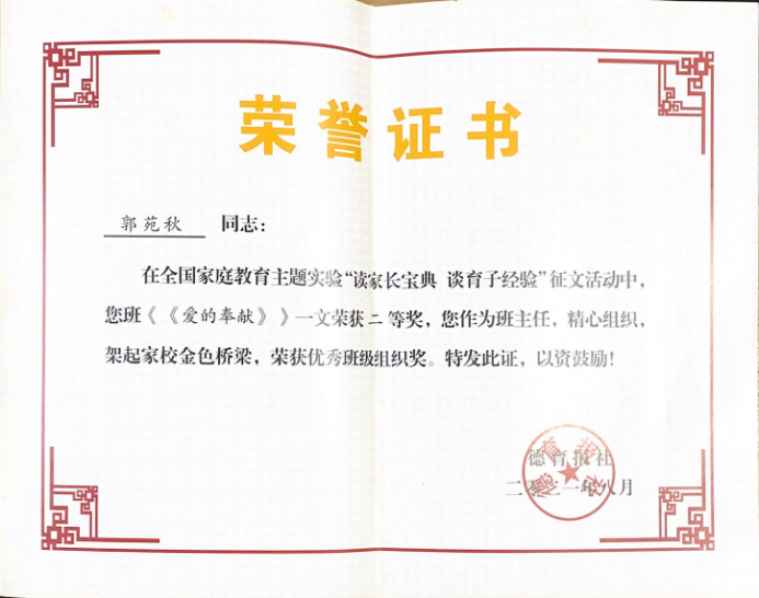 弦歌不辍,风雨无悔,风高浪急亦无所畏惧;芳华待灼,育人不倦,岁月奔腾也作等闲看。郭苑秋老师还将一如既往地在教育之路上不断追逐、探索,用爱心浇灌成长,用知识托举希望,心之所向,无问西东,传道授业,一路追光,不忘初心,砥砺前行!