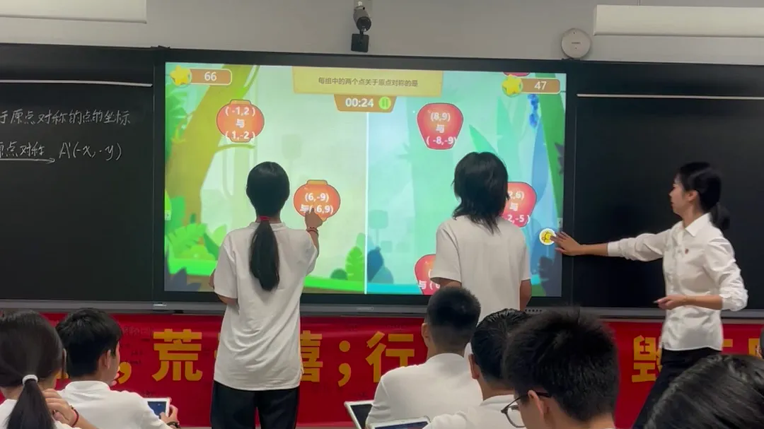 黄老师入职后就进行了智慧教学的相关培训,“学生与老师在课堂上通过希沃平板进行互动式教学?!?
