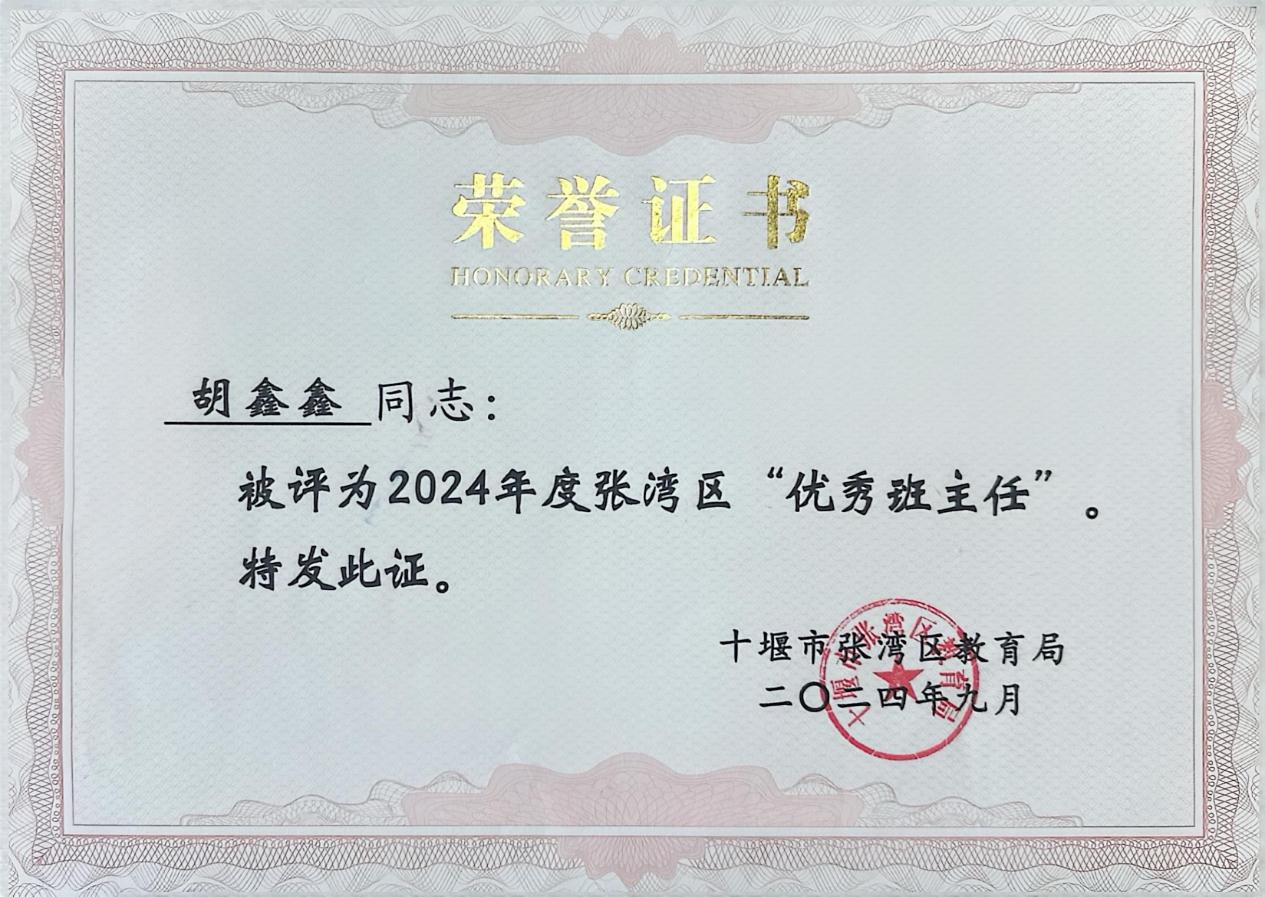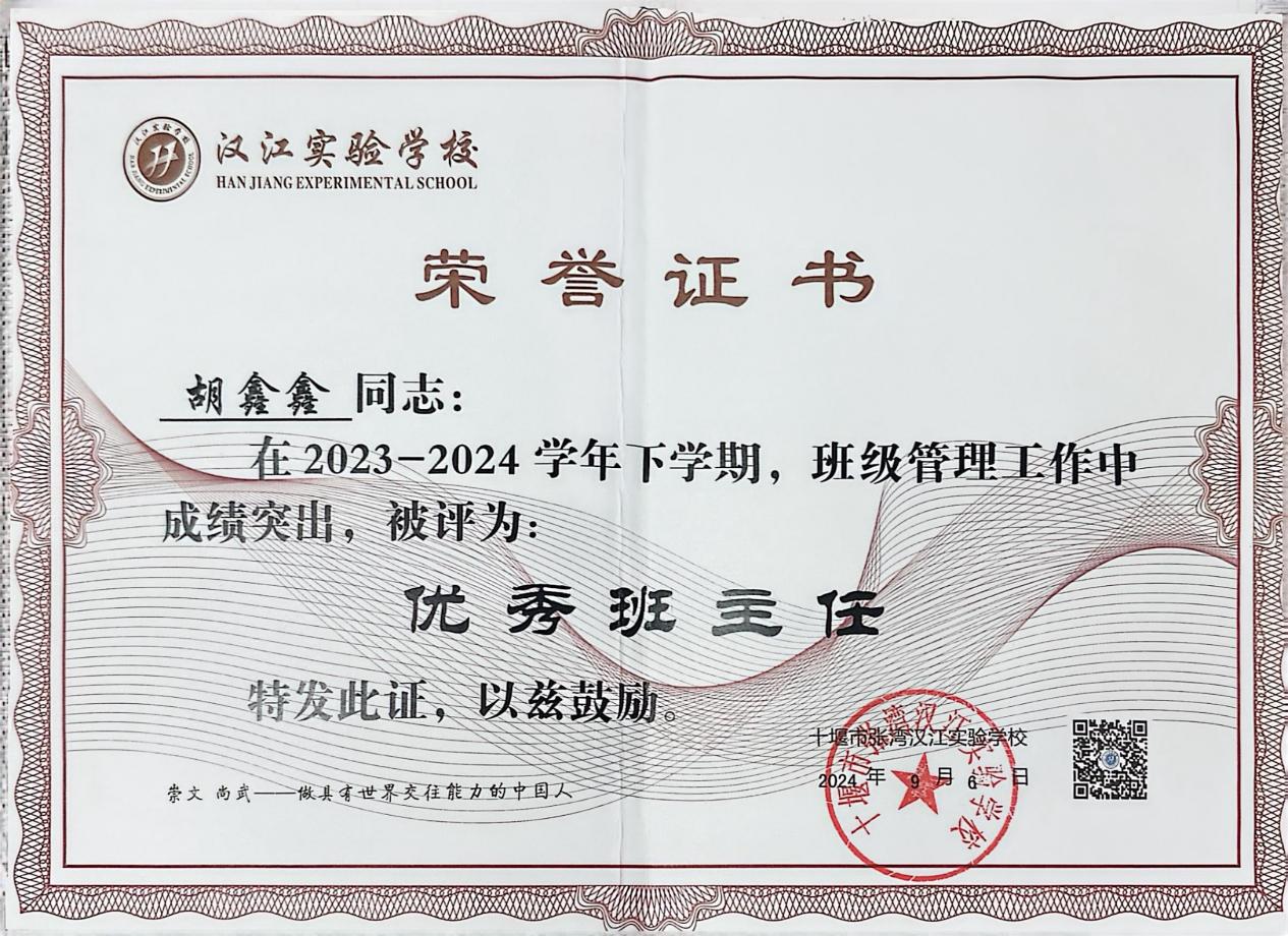 胡鑫鑫,三年级语文备课组长、班主任。她积极参加各种听评课、赛课展示等教师素养提升活动,不断了解语文学科的教育教学动态、现代教育理论和方法,关注学生成长发展,被评为2024年度张湾区“优秀班主任”称号;汉江实验学校“优秀班主任”“质量卓越教师”等。