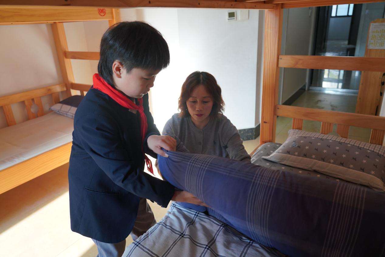 我们深知,良好的生活习惯是成长的基石。面对初离家庭、尚且稚嫩的孩子,我们从叠被子、摆鞋子、整理衣柜开始,一遍遍示范、一次次鼓励。曾经有个孩子总是把被子卷成“面包”,杂物堆满床头。我们没有批评,而是每天利用零碎时间走进他的寝室,蹲下来,手把手地教:“我们来比赛,看谁叠的‘豆腐块’更方正?”一点一点的进步,我们比孩子更开心。一个月后,当他第一次被评为“内务小标兵”,脸上那份光彩,让我们相信:师爱,就藏在这日复一日的耐心与不放弃之中。