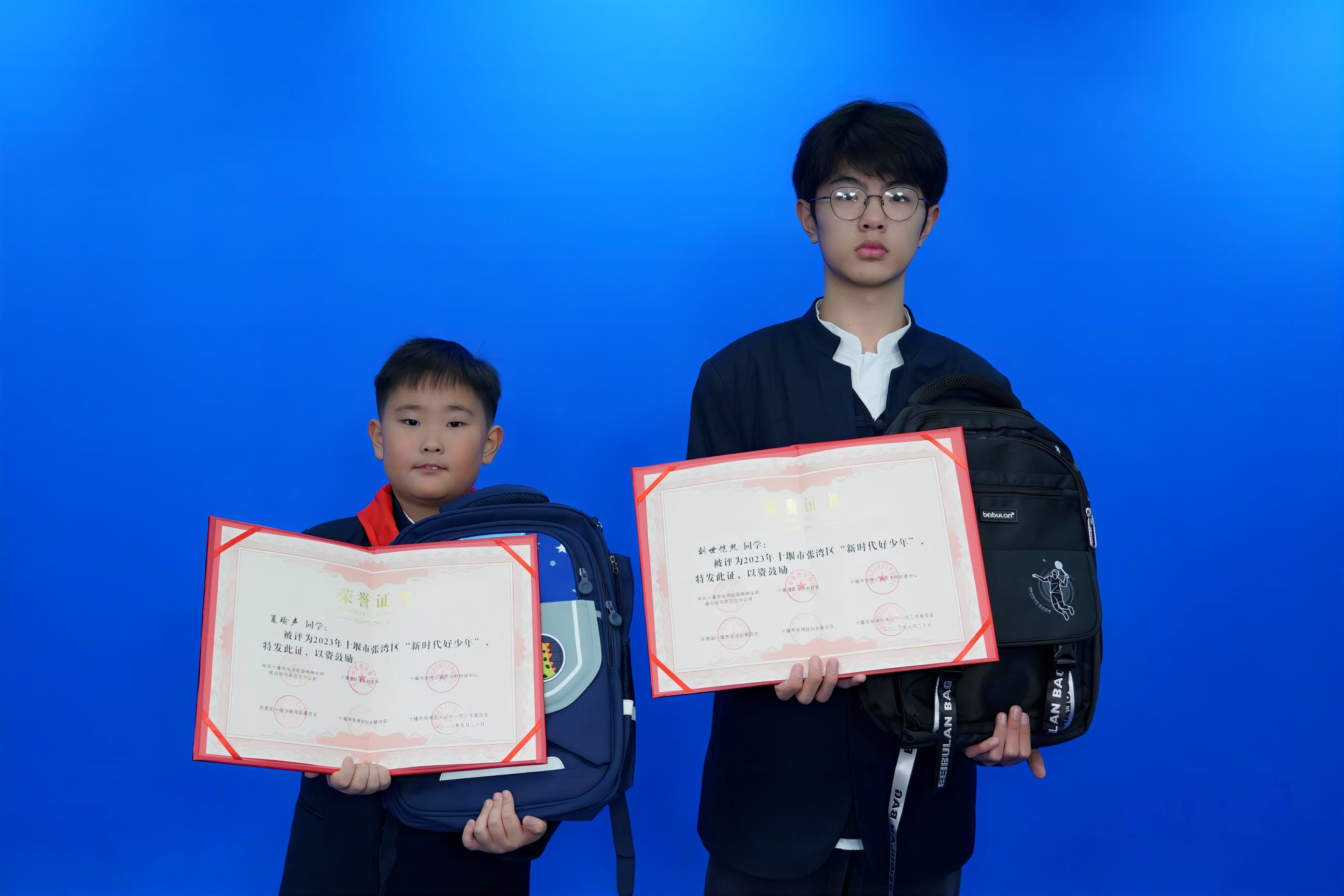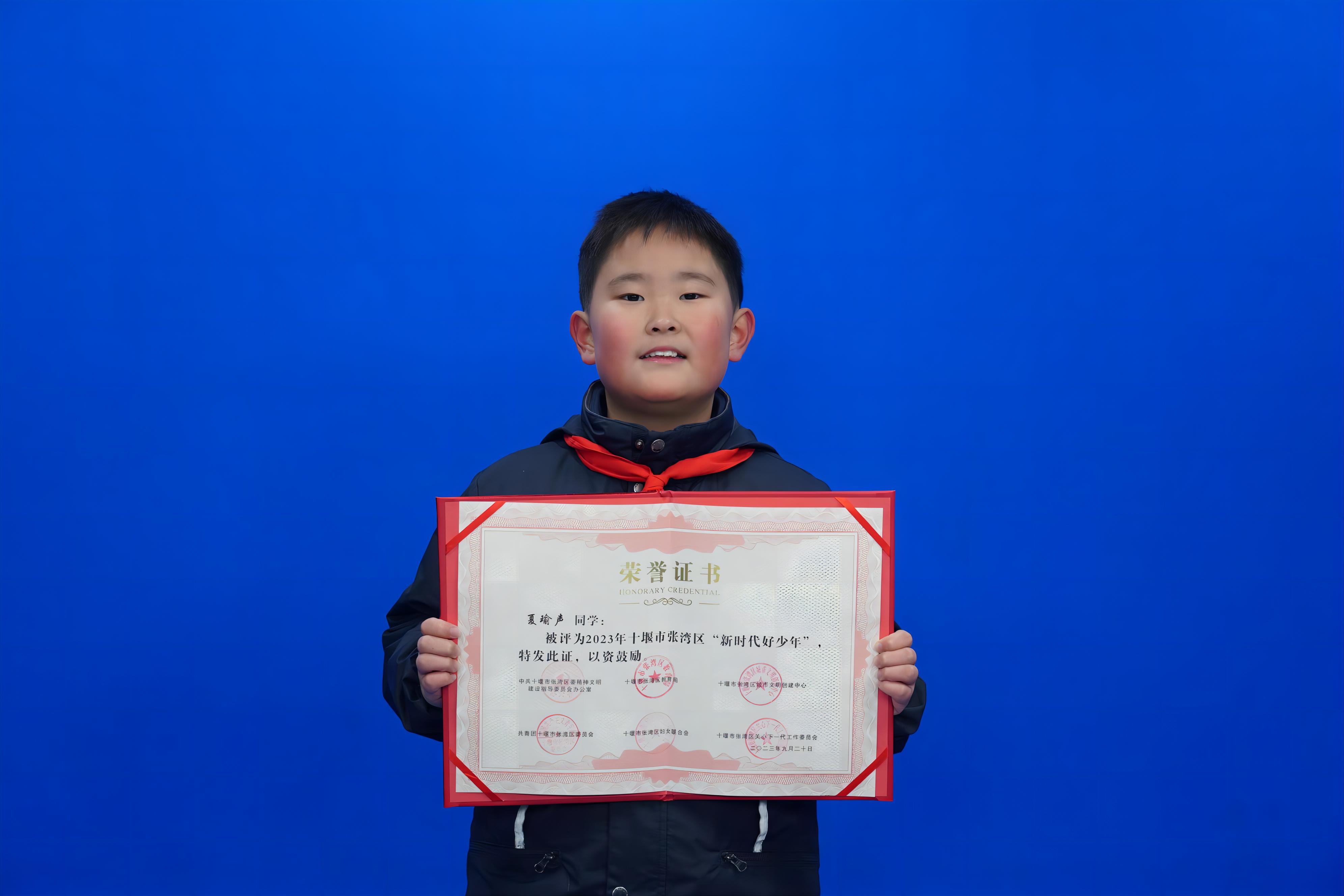 汉江实验学校2023年十堰市张湾区“新时代好少年”获奖学生:小学部 夏瑜声;初中部 刘世恺熙