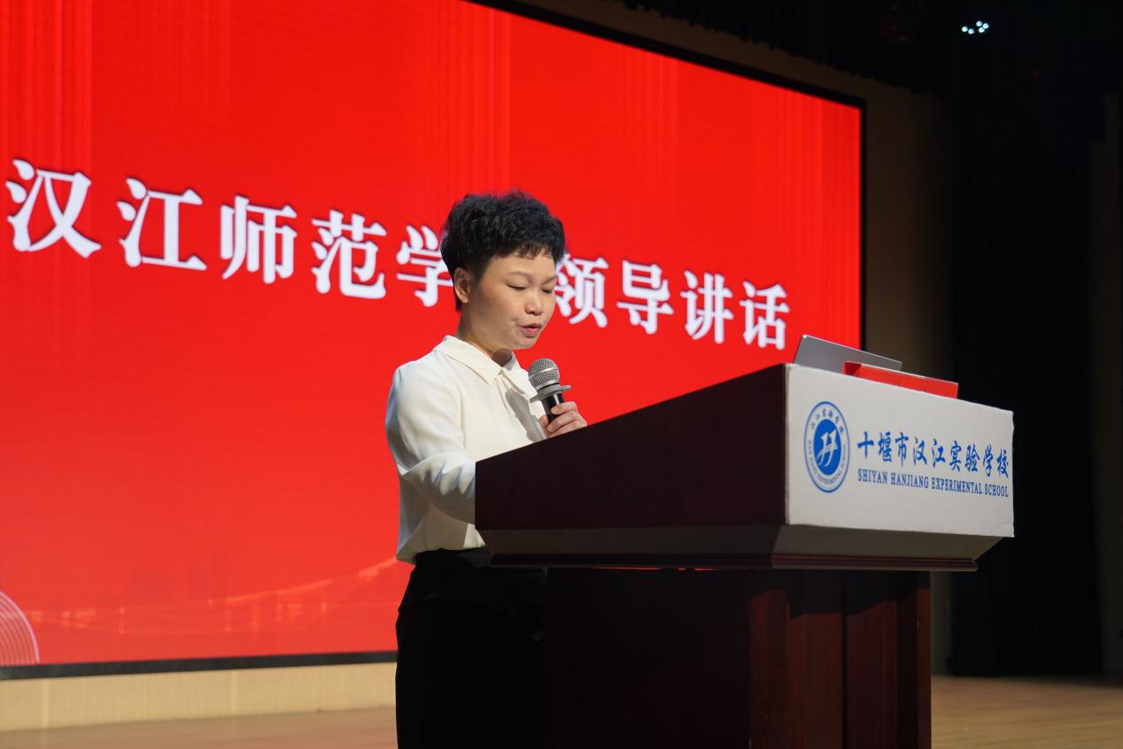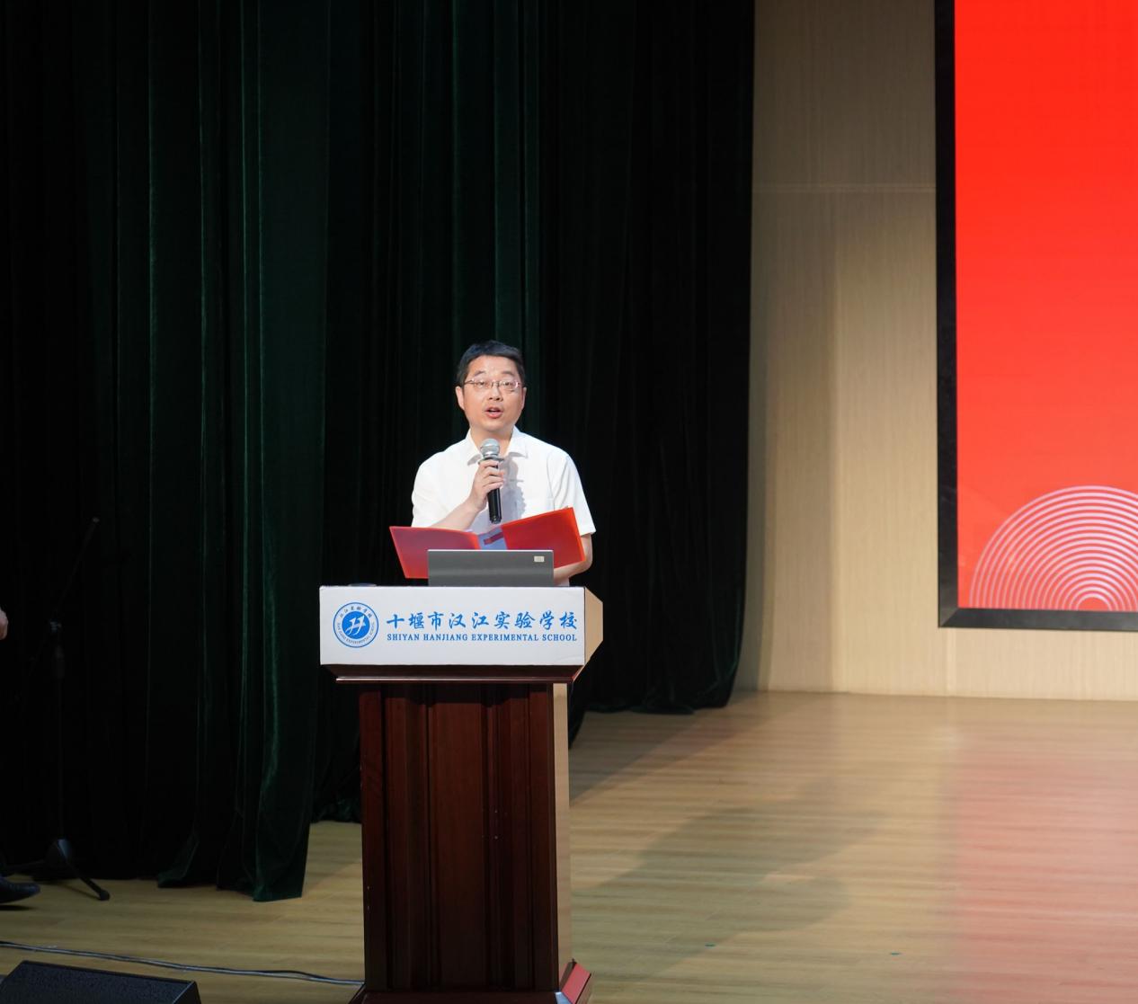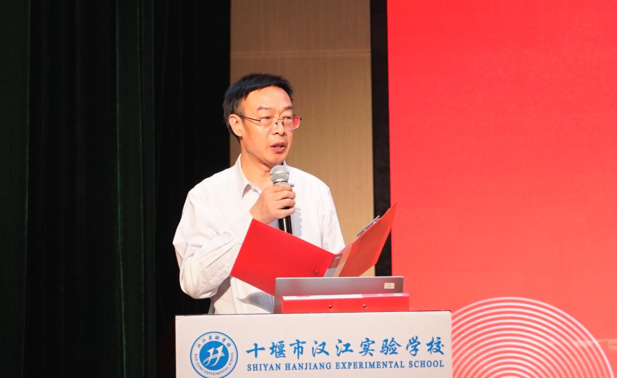 5月10日上午,“生活·实践”教育十堰中心授牌仪式暨教育教学成果交流大会在十堰市汉江实验学校隆重举行。第十三届全国人大常委、中国教育学会副会长、中国陶行知研究会学术委员会主任、华中师范大学陶行知研究中心主任周洪宇教授和华中师范大学国家教育治理研究院院长助理、教育学院教授、华中师范大学陶行知国际研究中心秘书长刘来兵教授特邀参加。汉江师范学院党委常委、副校长吴冰,十堰市政府副秘书长吕钢,十堰市教育局党组成员傅良华,十堰日报社党委委员、副总编辑陈立波,市教科院副院长丁海燕,市教科院课题规划办主任杨华等领导出席交流会。参会人员还有各县市(区)教育局领导、实验校学校校长、分管校长、德育负责人等共计近200人。