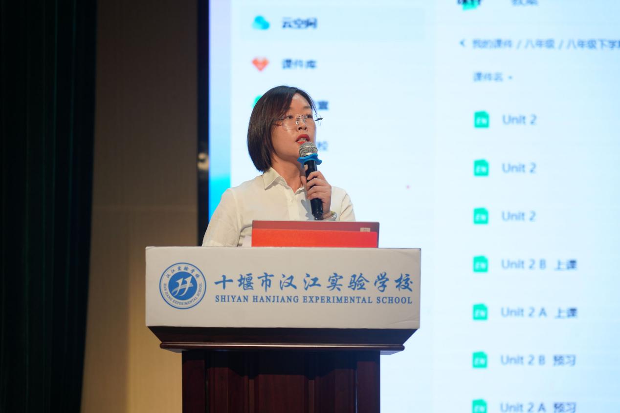 我校初中部教师发展中心主任、英语教师夏文婷作为教师代表,向各位领导嘉宾展示我们的智慧课堂。我校以提升学生核心素养为教学目标,尊重学生主体地位,依托真实问题情境,指向多元综合评价,让学生在智慧课堂之中体验学习成长的快乐,让课堂方寸之地结出智慧之花。