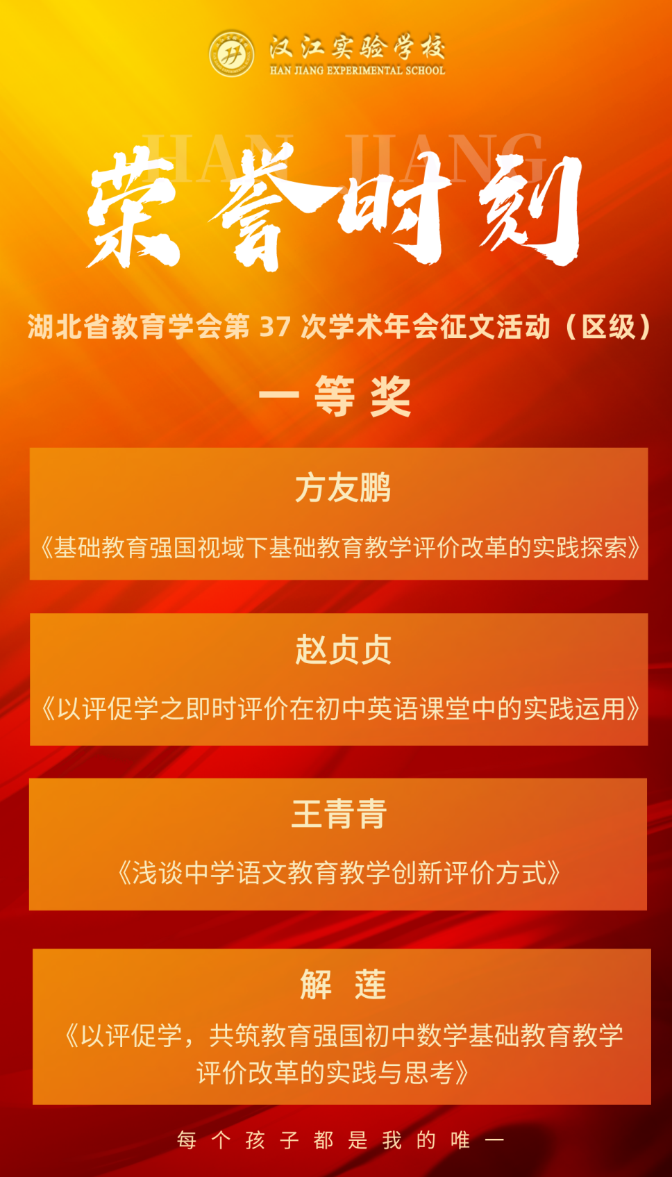 本次征文活动由张湾区教育教学服务中心组织,主题聚焦“基于教育强国的基础教育教学评价改革”,旨在推动教育教学评价体系的创新与实践。此次获奖,不仅是我校教师个人专业能力的体现,更是学校长期以来高度重视教科研工作、积极营造浓厚学术氛围、持续深化教学评价改革的集中成果展示,它彰显了我校在推动教育教学创新方面作出的不懈努力。