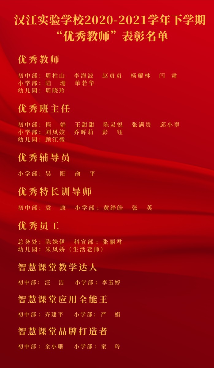 上一篇:?汉江实验学校2020-2021学年下学期“先进班集体”表彰名单