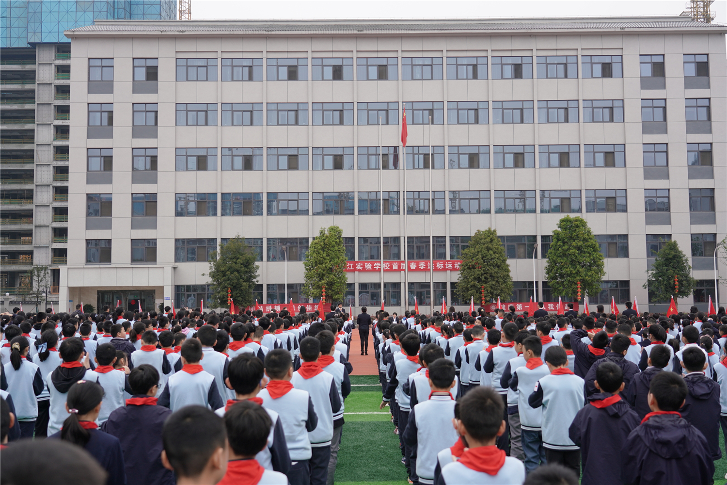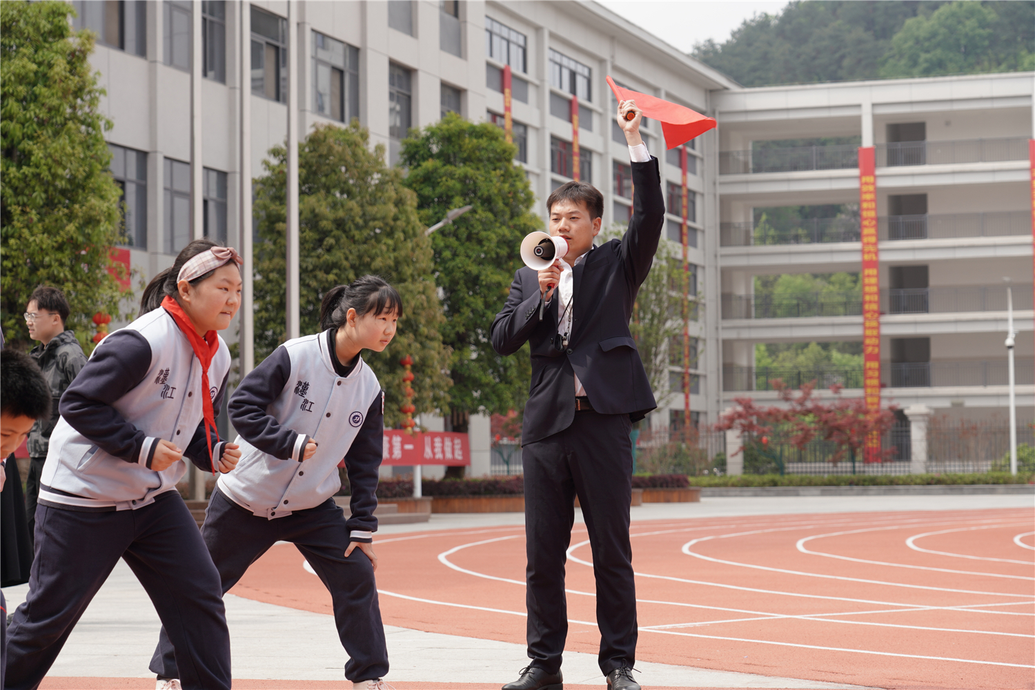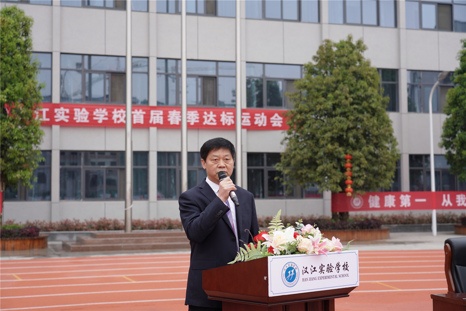 为全面实施《国家学生体质健康标准》,推动阳光体育运动,增强学生身体素质,2021年4月8日,汉江实验学校举办了首届春季体质健康达标运动会。校长朱仕竹,副校长陈磊、王宇、陈伟等领导出席,小学部一至六年级,初中部七、八年级全体学生参加。
