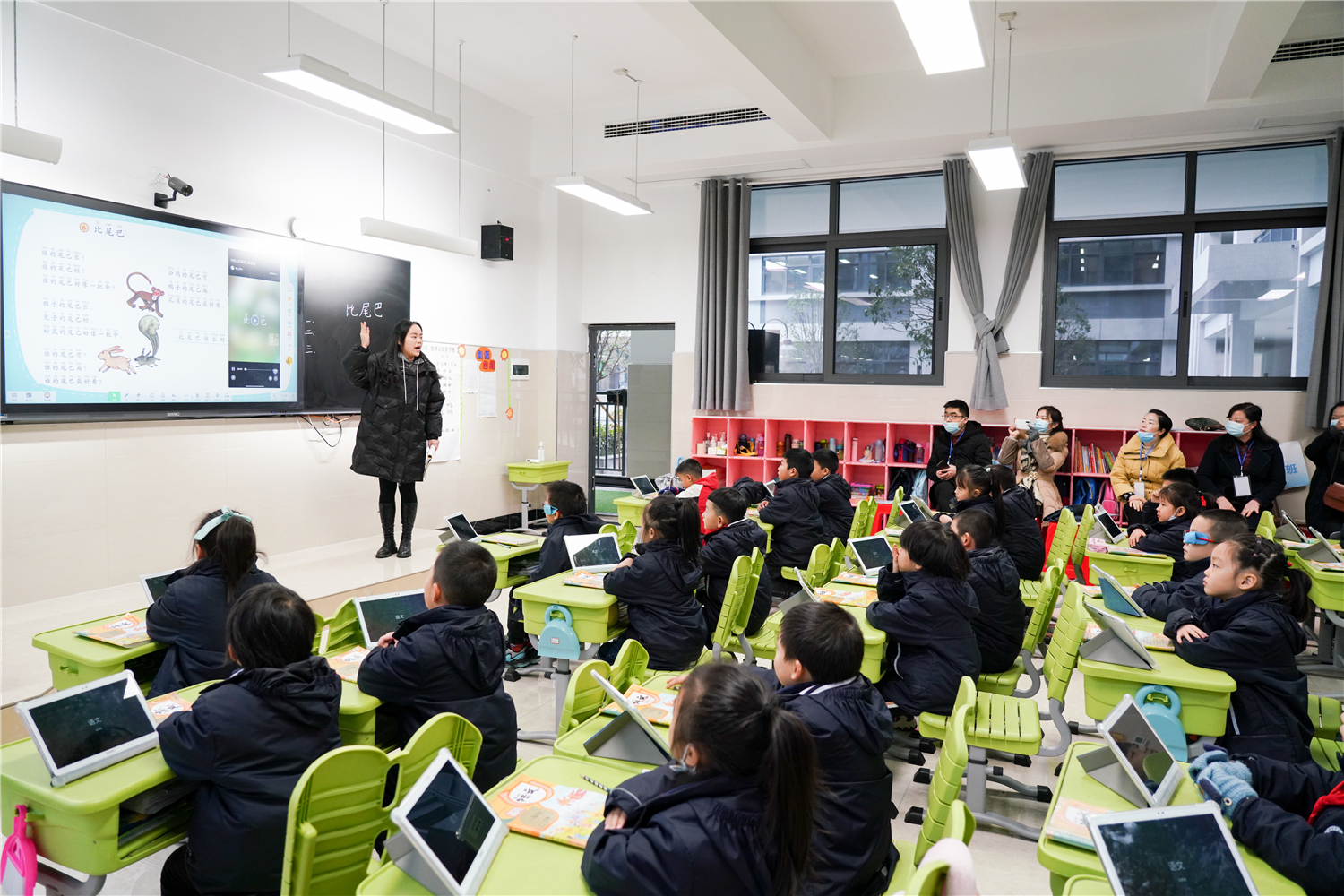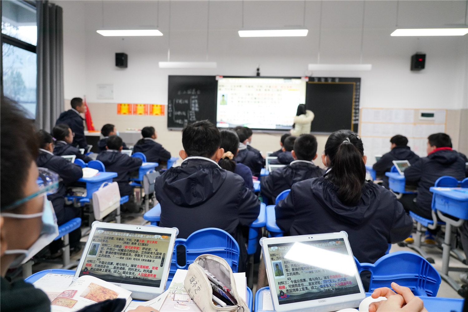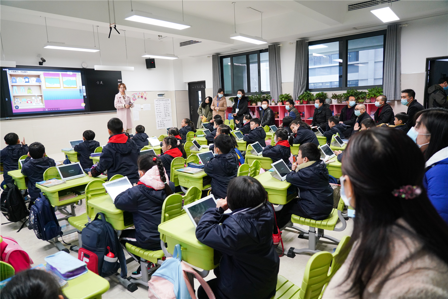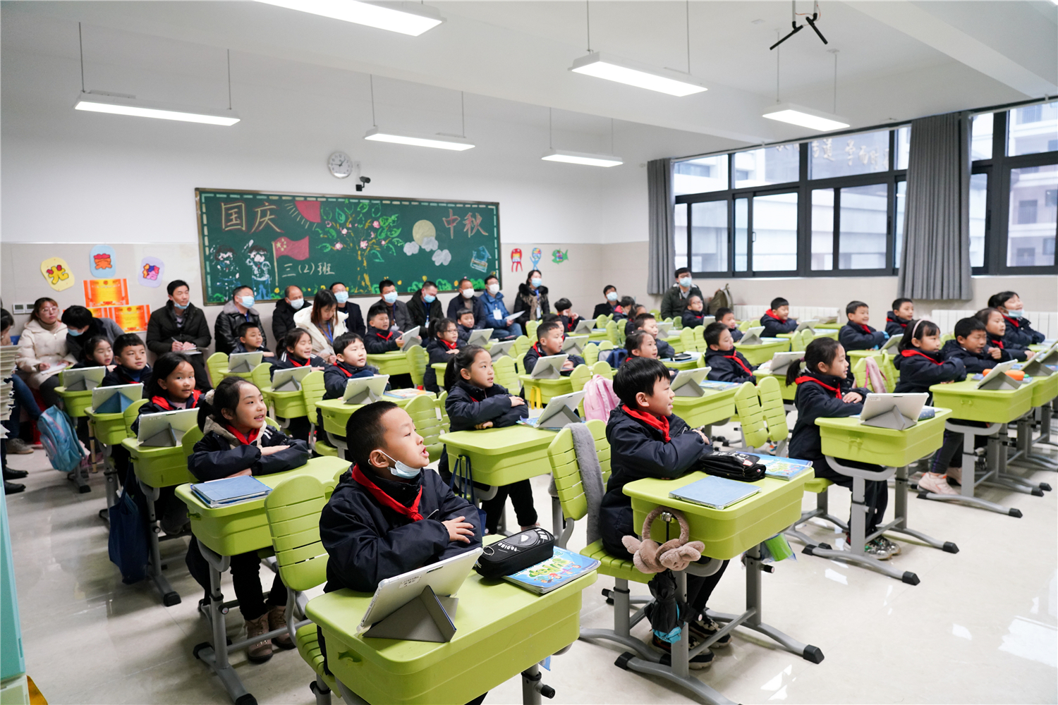 按照会议安排,上午第一、二节课各位与会领导、专家随堂观摩了我校一、三、五、六、七、八、九七个年级的语文、数学、英语共计10节常态化“5G智慧课堂”,了解我校教师在现代信息技术条件下如何高效开展课堂教学。