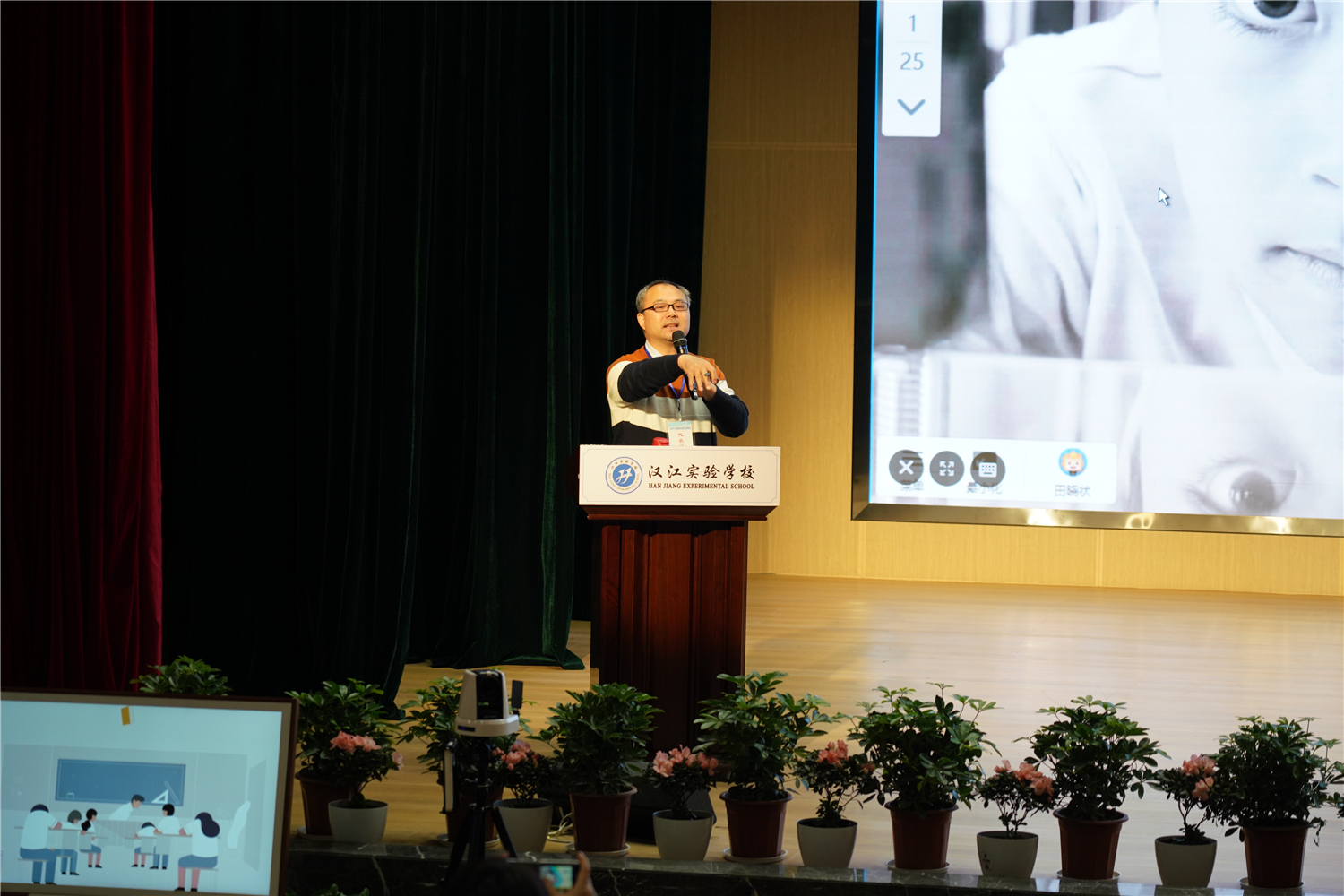 Blackboard中国教育研究院副院长李国云以我校小学五(3)班童玲老师的语文课《古人谈读书一》、初中七(3)班全小珊老师的英语课《?Unit?7?How?much?are?these?socks??》为例,对上午的观摩课堂进行了点评,肯定了老师们在信息技术条件下对学生的关注关爱及课堂导入、课堂目标推送、习题推送、师生互动等教学环节,对我校老师的信息化教学能力给予充分肯定,并对课堂教学中如何进行科学分组、个性化辅导等提出了建议。李院长以《基于常态化应用的智慧课堂》为专题的讲座首先剖析了学习空间、技术环境、心理环境这三个层面对智慧课堂的作用,其次分享了“基于项目式、跨学科融合、实景体验式学习”三种创设智慧课堂的方法,最后建议各学校在智慧课堂建设之路上要更新观念、重构课堂、创新模式。讲座案例丰富、数据详实,贴近教育实际,让全体与会者受益颇多。