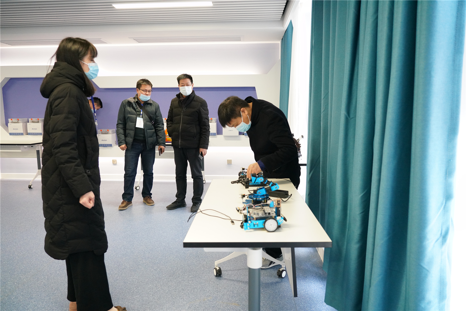 午间,各位领导、专家在校领导的陪同下,实地参观我校未来教室、校园电视台、电子书法、电子沙画、创客教室、VR虚拟教室等特色功能室,体验智慧教学的各项设备及功能,对我校在教育教学硬件、软件方面的大力投入和精细管理表示赞许。